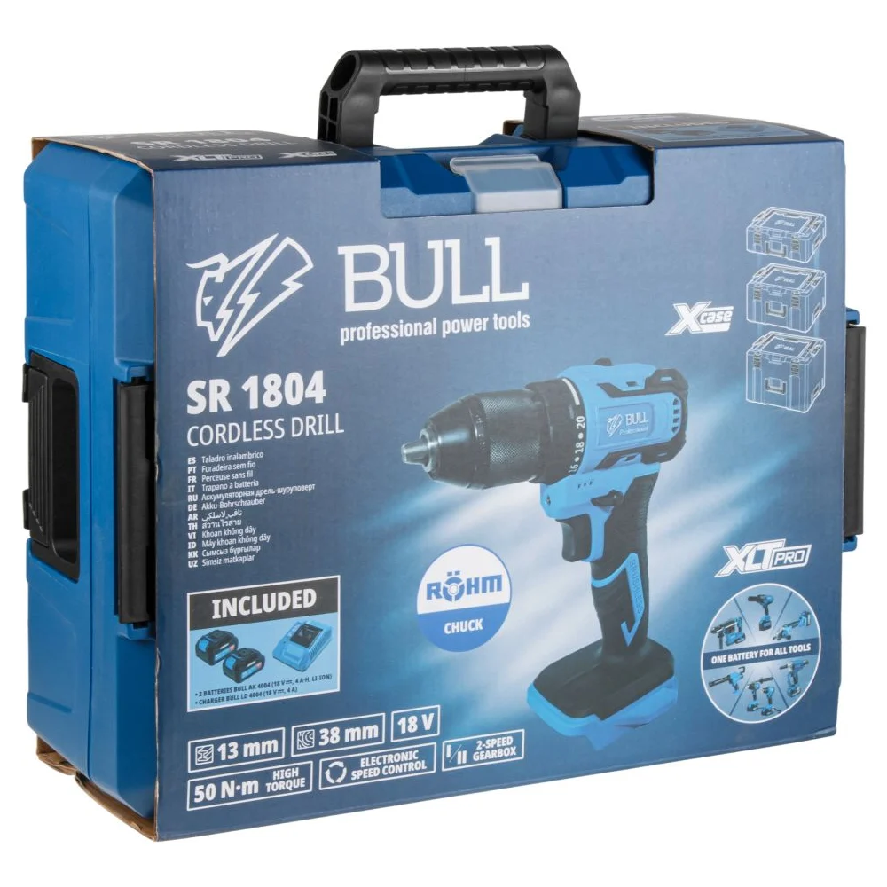 Купить Аккумуляторная дрель-шуруповерт BULL SR 1804 R-series в чемодане XLTpro бесщеточный, Импульс, 18 В, 50 Н*м, 2х2 А*ч ЦЗ-0163944920 по лучшей цене с доставкой - интернет магазин №1 в России