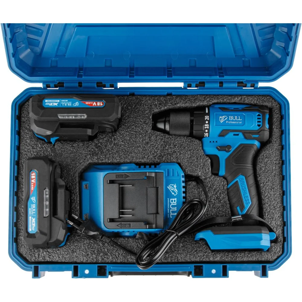 Аккумуляторная дрель-шуруповерт BULL SR 1804 R-series в чемодане XLTpro бесщеточный, Импульс, 18 В, 50 Н*м, 2х2 А*ч ЦЗ-0163944920