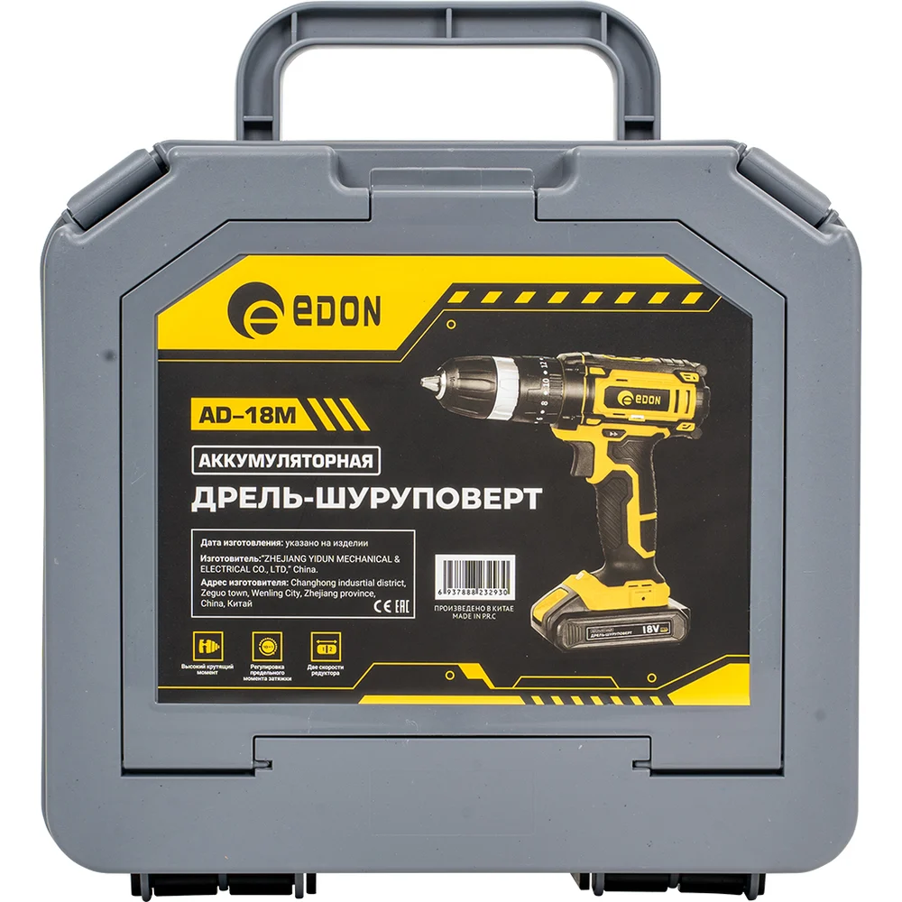 Купить Аккумуляторная дрель (шуруповерт) Edon AD-18M (18В., 30Н.м.) 27684 по лучшей цене с доставкой - интернет магазин №1 в России