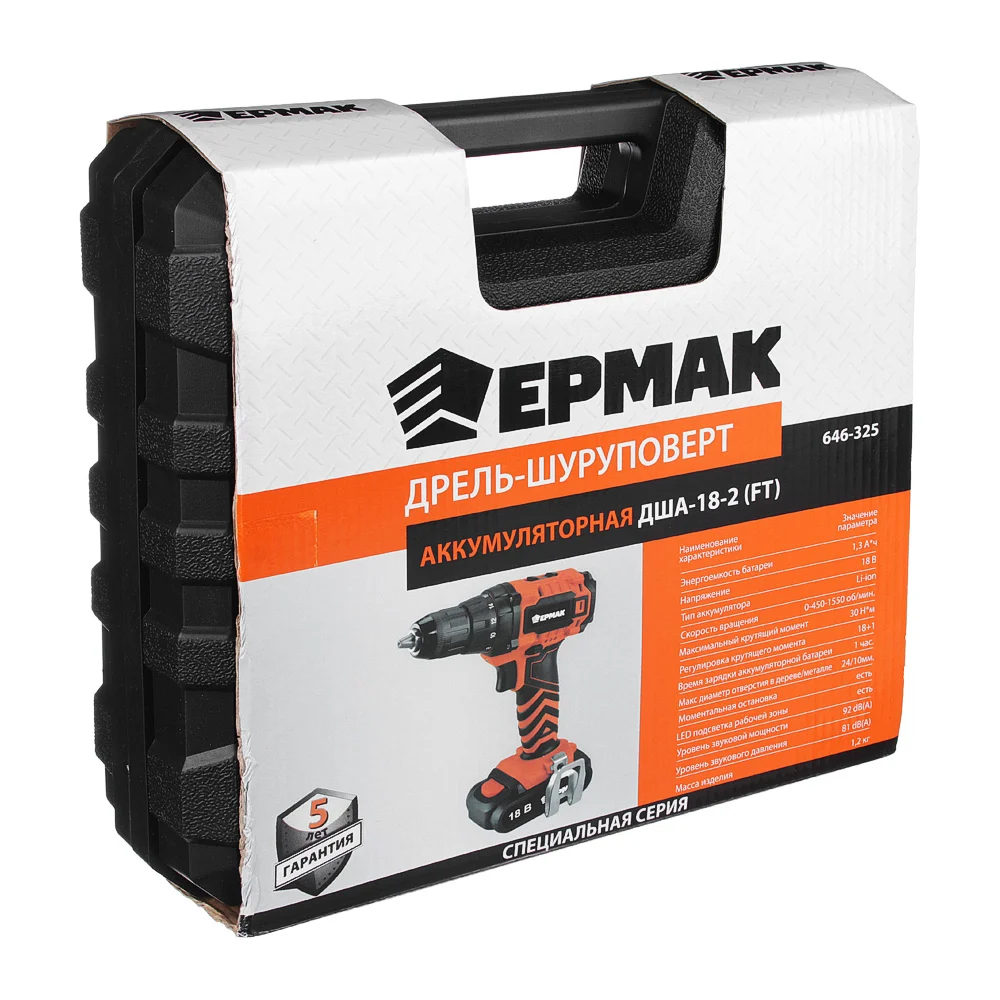 Купить Аккумуляторная дрель-шуруповерт ЕРМАК ДША-18 646-325 по лучшей цене с доставкой - интернет магазин №1 в России
