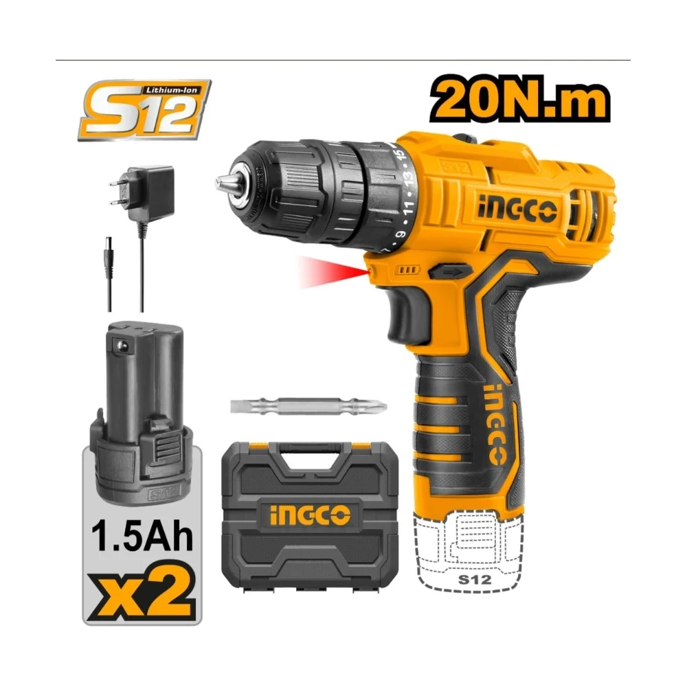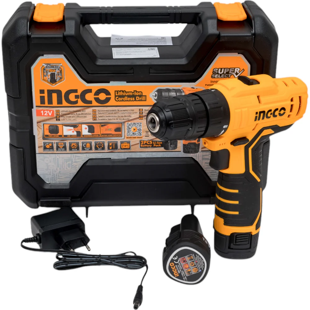 Купить Аккумуляторная дрель-шуруповерт INGCO Li-Ion, 12 В CDLI12208 по лучшей цене с доставкой - интернет магазин №1 в России