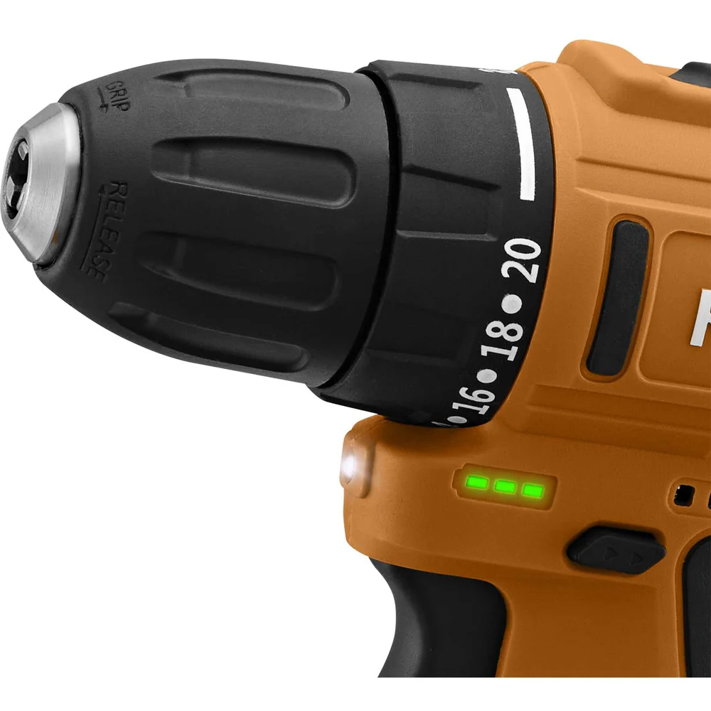 Индикатор уровня зарядки на корпусе дрели нет