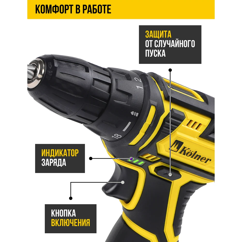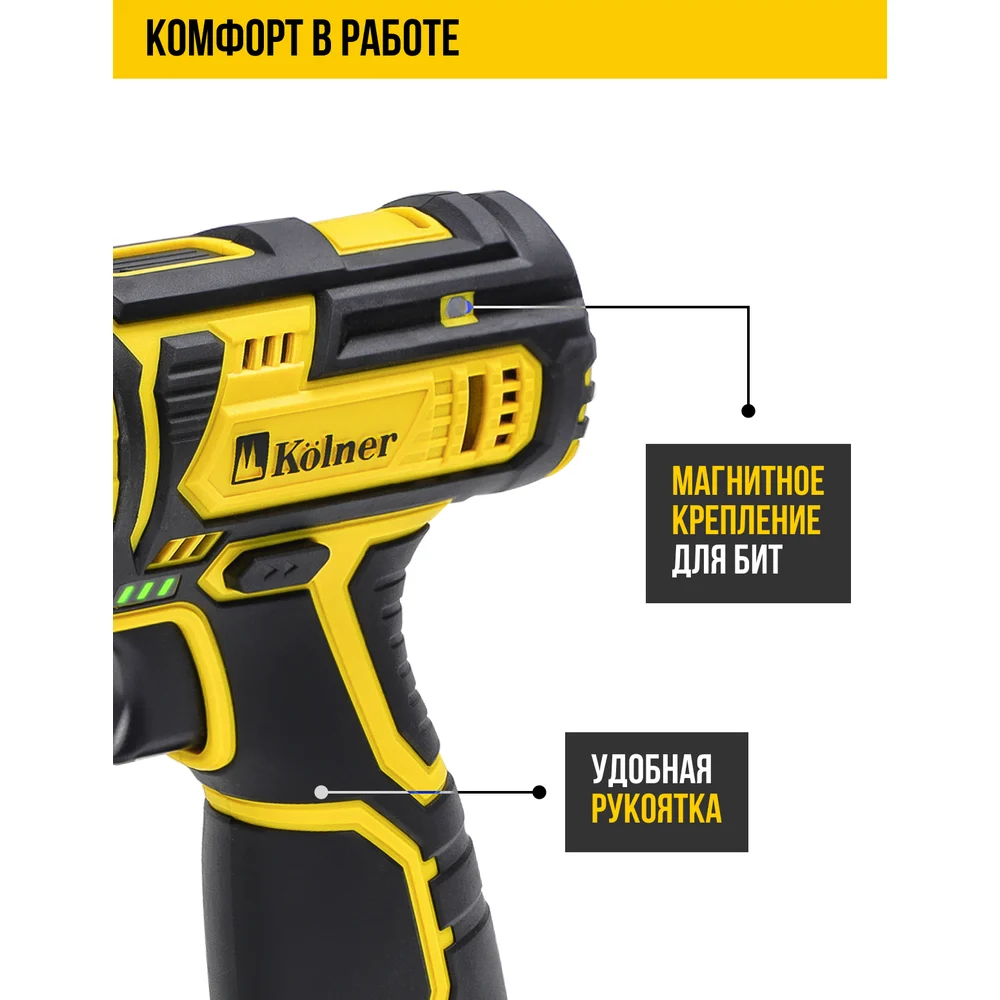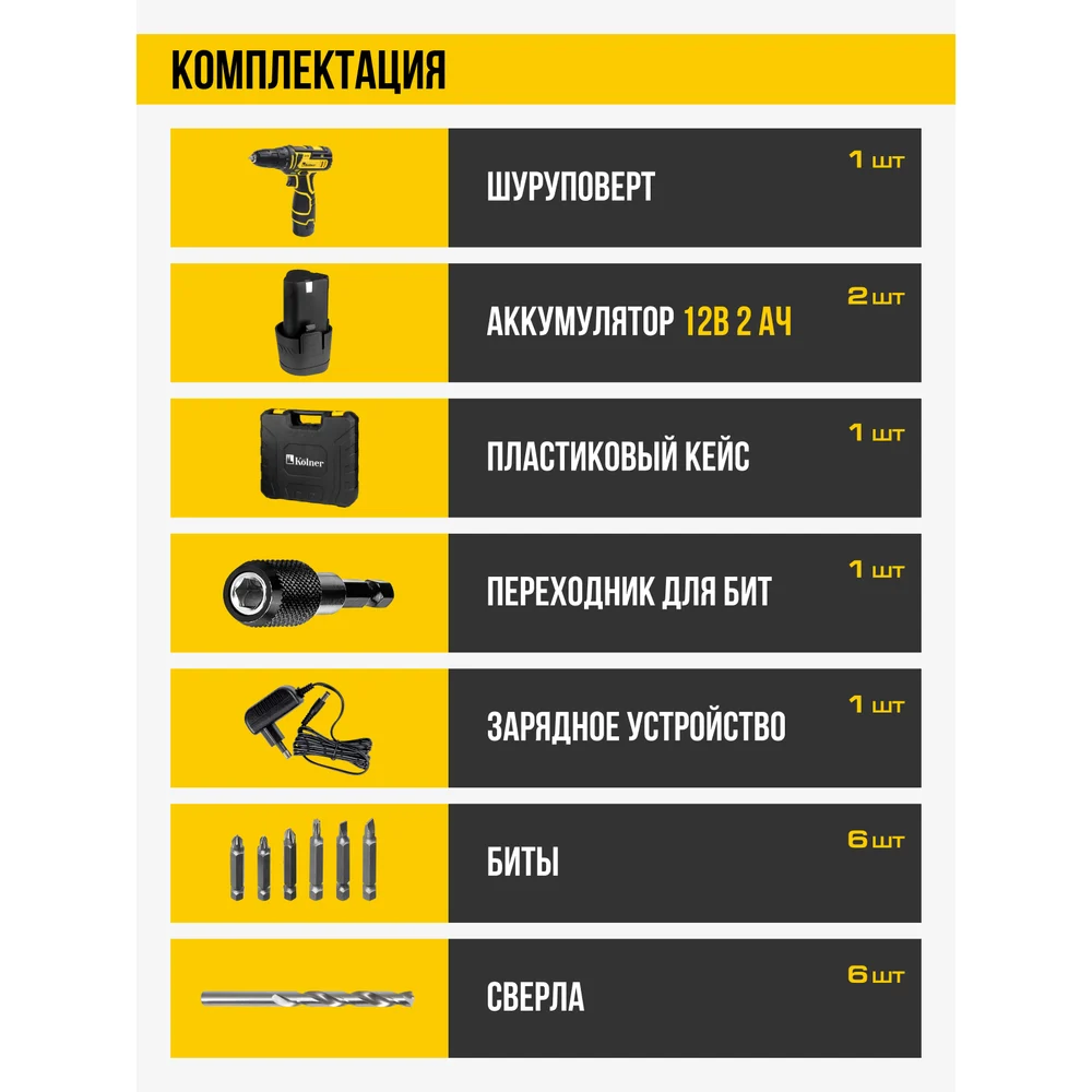 Купить Аккумуляторная дрель-шуруповерт Kolner 12 Вольт 8020100313 по лучшей цене с доставкой - интернет магазин №1 в России