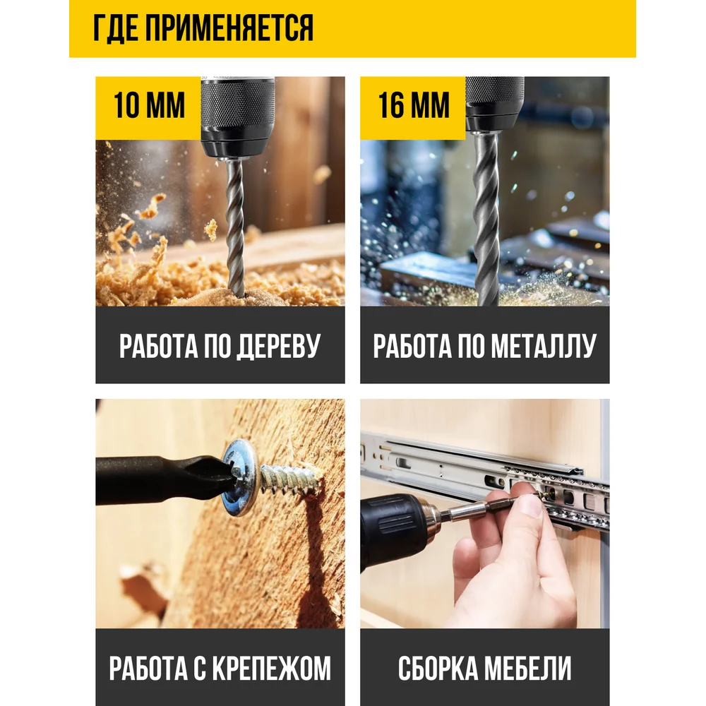 Мах диаметр сверления (дерево) 16