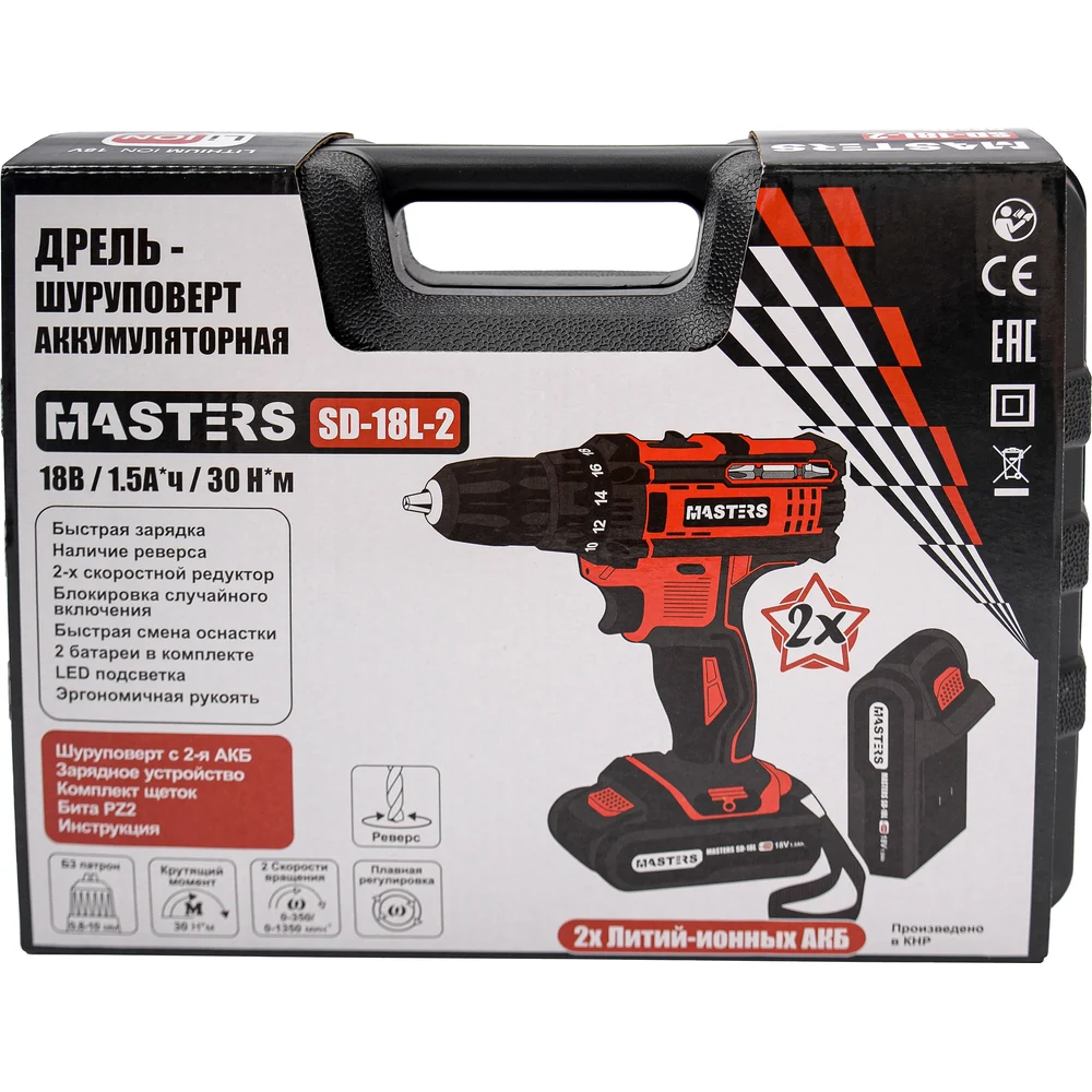 Купить Аккумуляторная дрель-шуруповерт MASTERS SD-18L-2 18810 по лучшей цене с доставкой - интернет магазин №1 в России