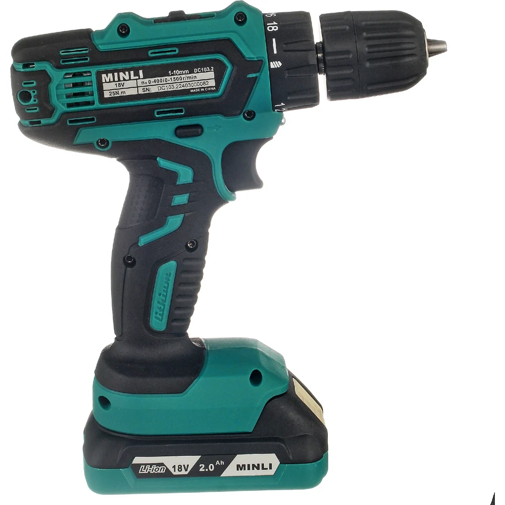 Аккумуляторная дрель-шуруповерт MINLI 10mm 25N.m Li-ion 18Vx2 DC103.2-2.0A