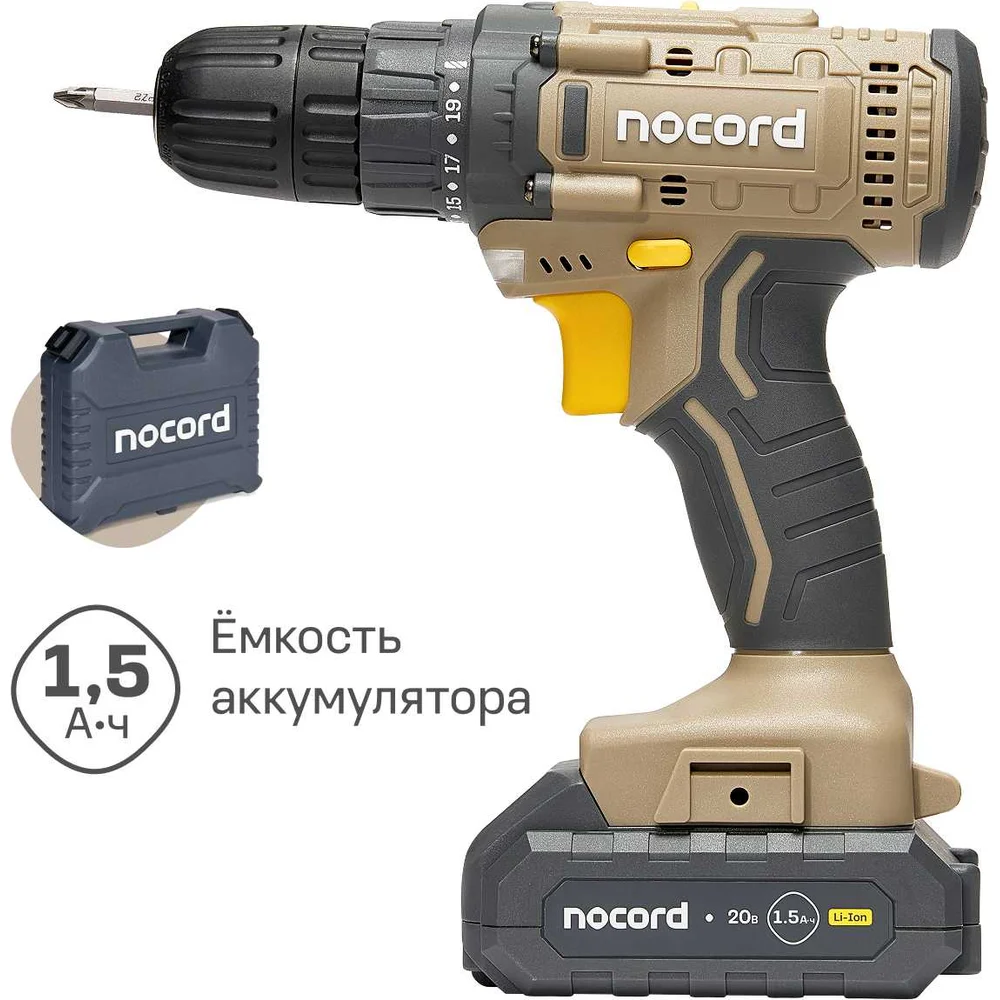 Аккумуляторная дрель-шуруповерт Nocord NCD-20.2.15.C 20В, 2x1.5 А·ч Li-Ion, в кейсе + 24 предмета оснастки 900194.NCD-20.2.15.C-2