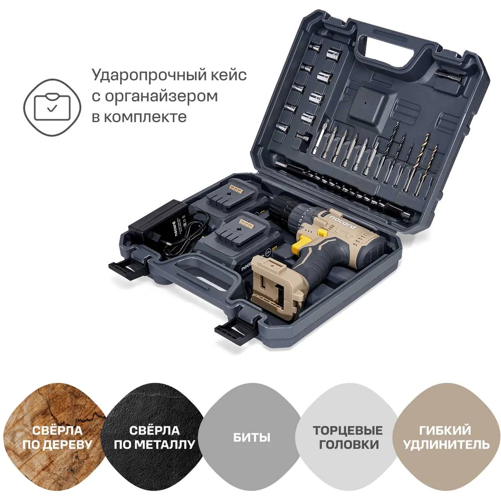 Купить Аккумуляторная дрель-шуруповерт Nocord NCD-20.2.15.C 20В, 2x1.5 А·ч Li-Ion, в кейсе + 24 предмета оснастки 900194.NCD-20.2.15.C-2 по лучшей цене с доставкой - интернет магазин №1 в России