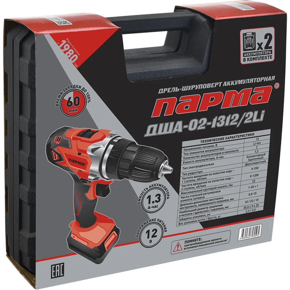 Купить Аккумуляторная дрель-шуруповерт Парма ДША-02-1312/2Li 02.021.00006 по лучшей цене с доставкой - интернет магазин №1 в России