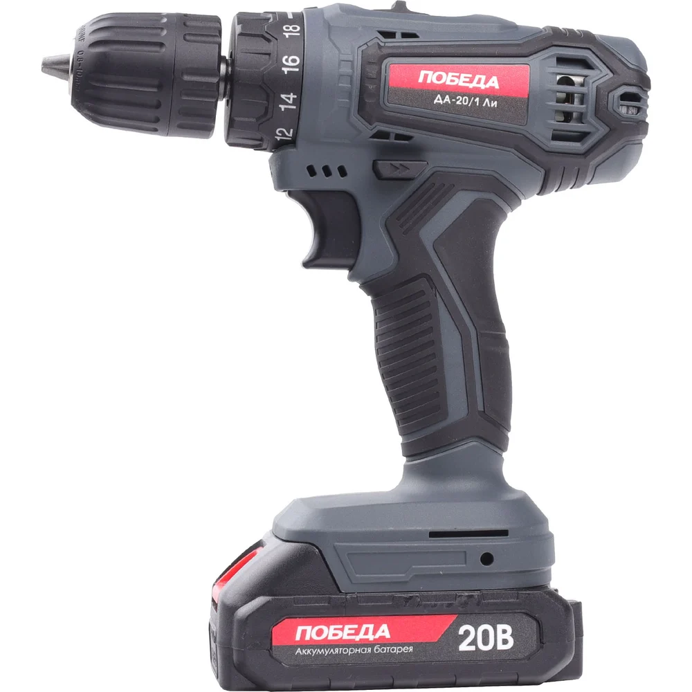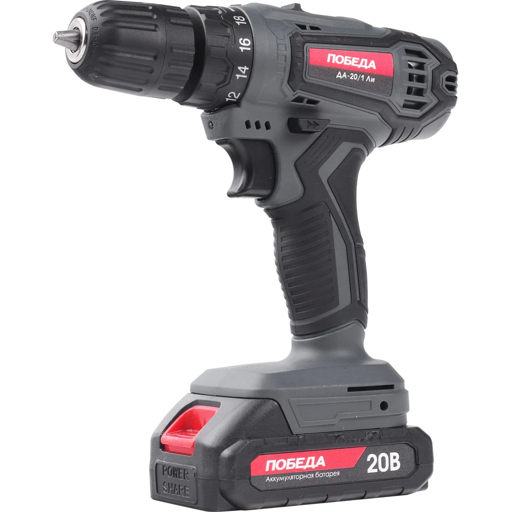 Купить Аккумуляторная дрель-шуруповерт Победа ДА-20/1 Ли, 20В, 2,0Ач, 1 АКБ, 38Нм, 180201700 по лучшей цене с доставкой - интернет магазин №1 в России