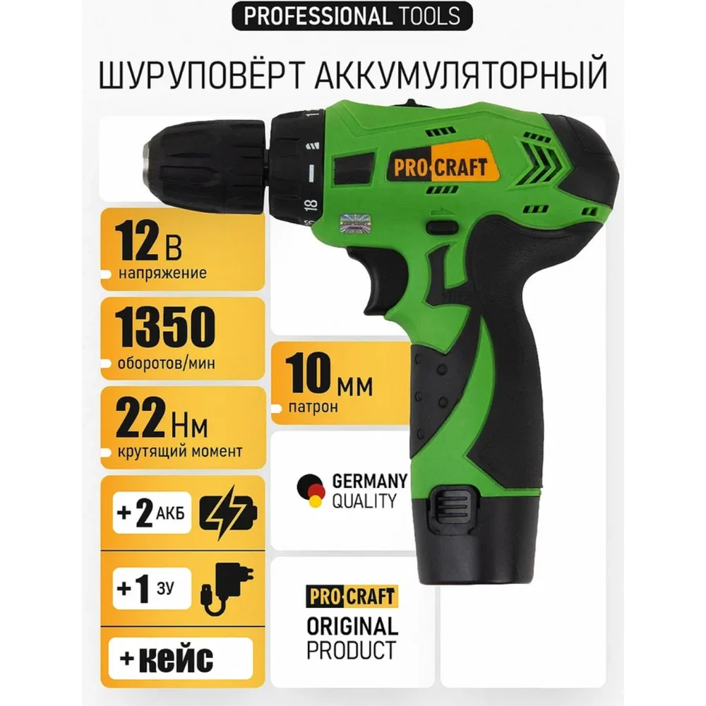 Купить Аккумуляторная дрель-шуруповерт PROCRAFT PA12LIS по лучшей цене с доставкой - интернет магазин №1 в России