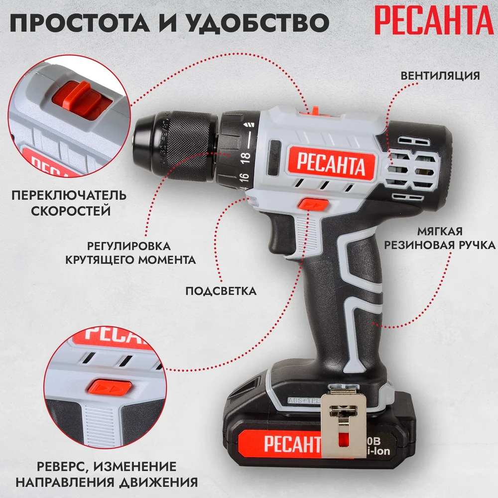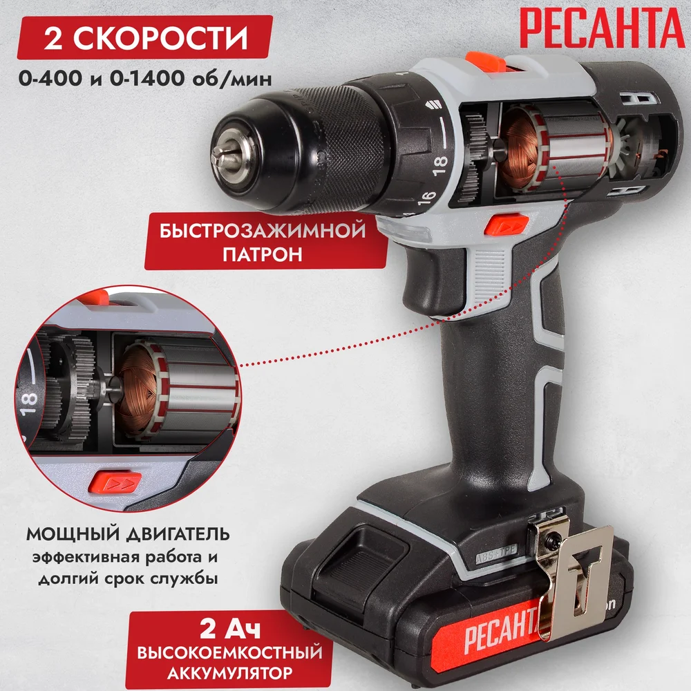 Купить Аккумуляторная дрель-шуруповерт Ресанта ДА-20-2ЛК 75/14/11 по лучшей цене с доставкой - интернет магазин №1 в России