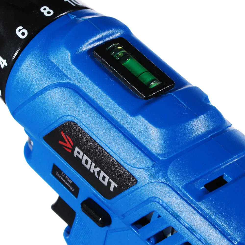 Индикатор уровня зарядки на корпусе дрели нет