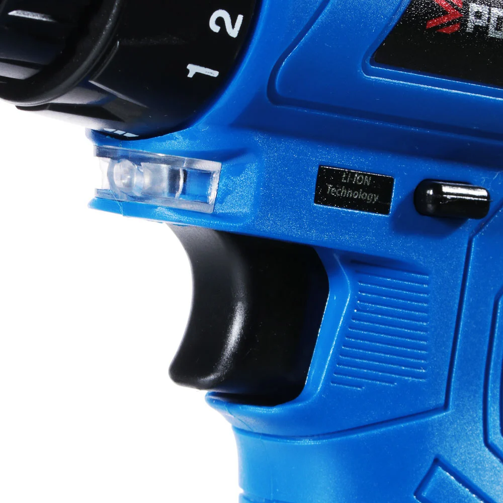 Комплектация Аккумуляторная дрель-шуруповерт; 1 аккумулятор; Зарядное устройство; Коробка