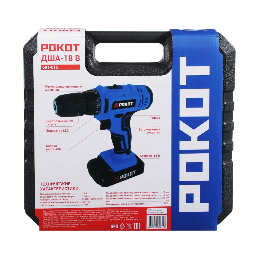 Купить Аккумуляторная дрель-шуруповерт РОКОТ ДША-18в 691-015 по лучшей цене с доставкой - интернет магазин №1 в России