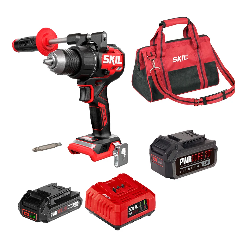 Комплектация Аккумуляторная дрель-шуруповерт DL 6270; Боковая рукоятка; Двусторонняя отвертка-бита; Клипса для крепления на ремень; Аккумуляторная батарея PWRCORE 20™ 20В 2,0 Ач (BY5197); Аккумуляторная батарея SKIL BY5196 (4 А·ч, 20 В); Зарядное устройство 20В; Сумка для инструмента компактная BG3224