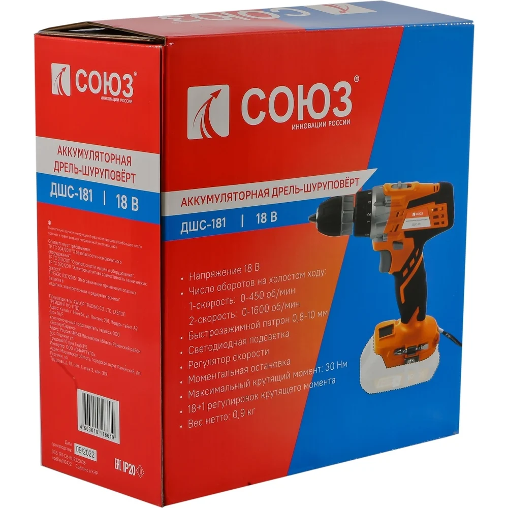 Купить Аккумуляторная дрель-шуруповерт Союз ДШС-181 по лучшей цене с доставкой - интернет магазин №1 в России