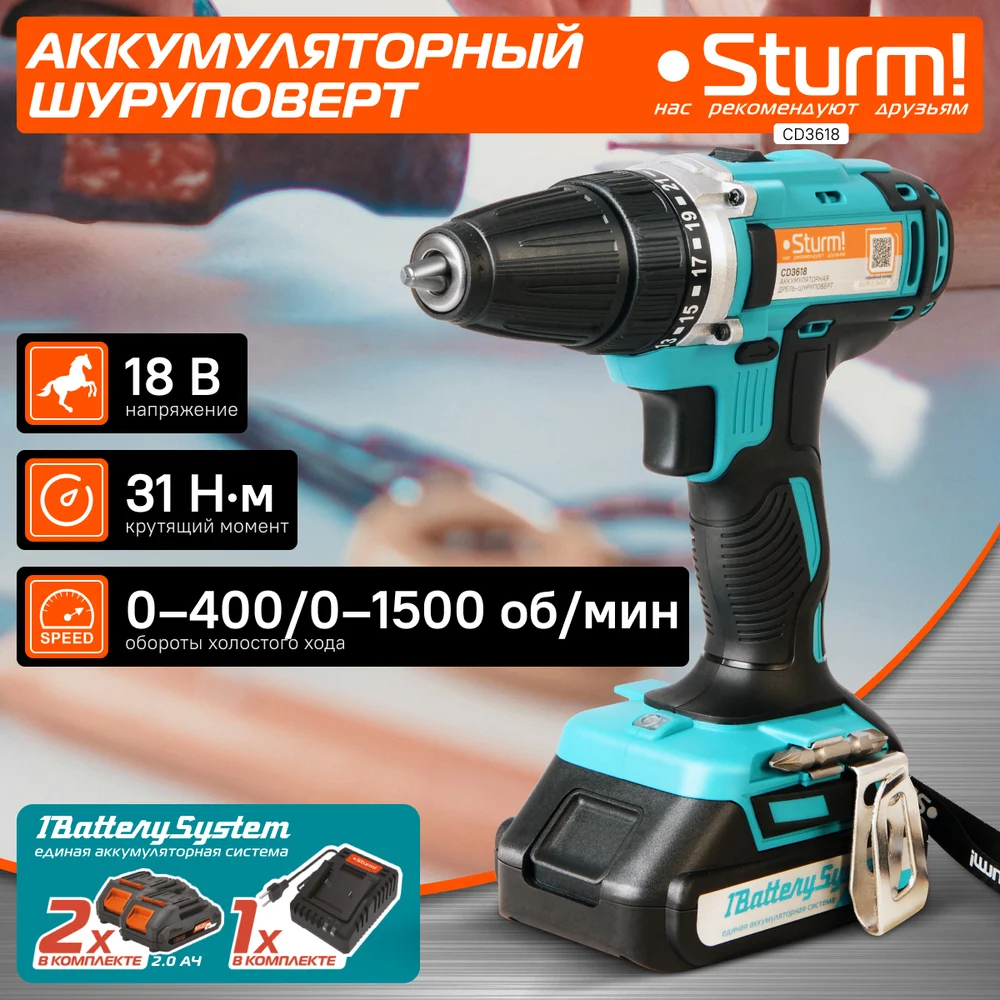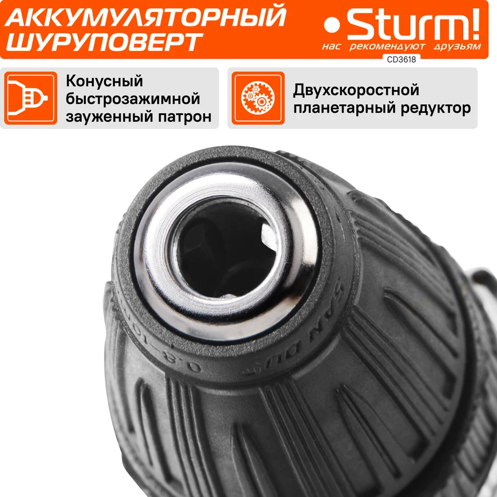 Купить Аккумуляторная дрель-шуруповерт Sturm CD3618 по лучшей цене с доставкой - интернет магазин №1 в России