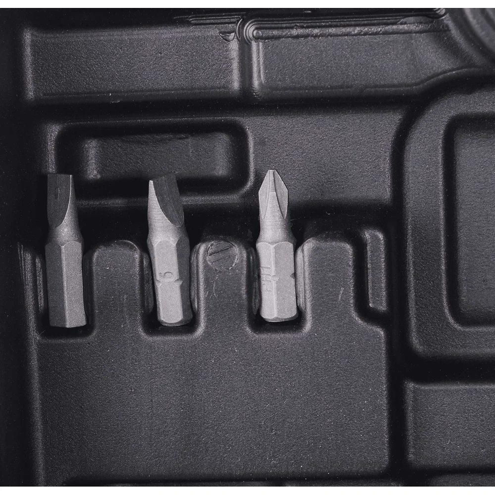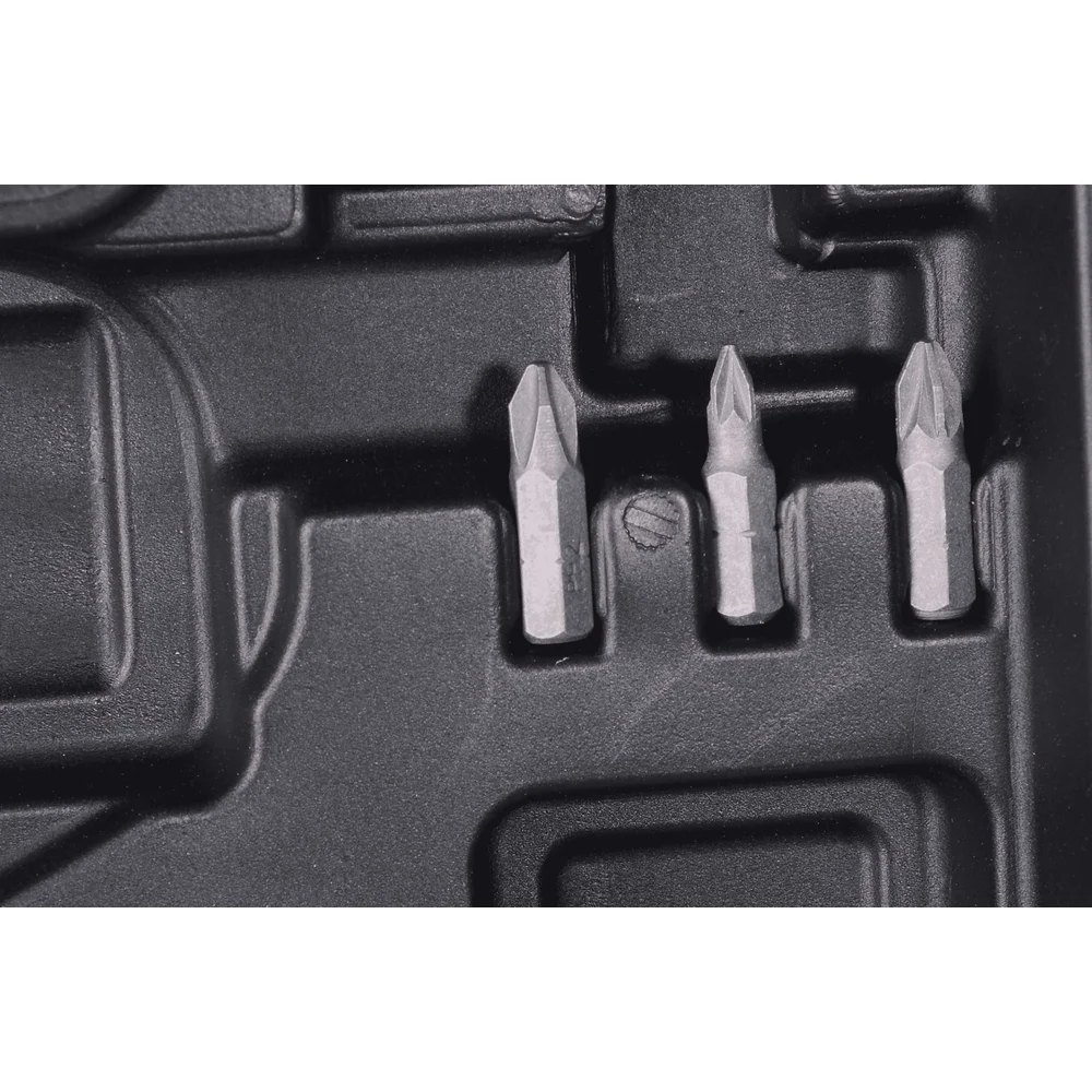 Комплектация Аккумуляторная дрель-шуруповерт; 2 аккумулятора; Зарядное устройство; Паспорт; Кейс