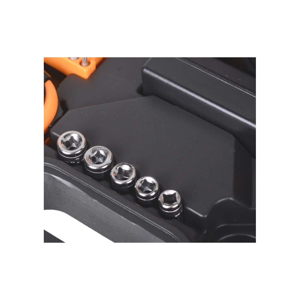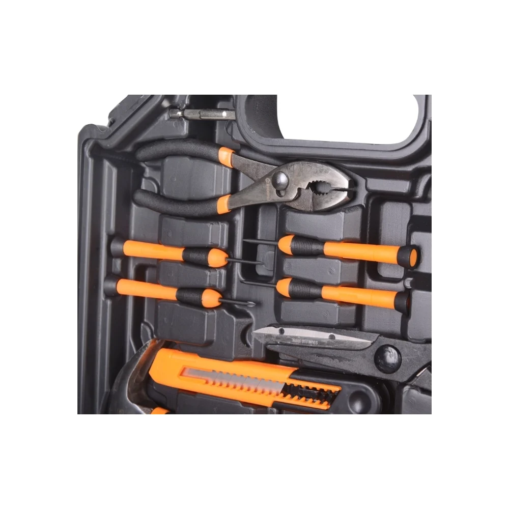 Комплектация Дрель-шуруповёрт; Рулетка 3 м; Набор бит, 30 шт; Набор крепежа в пластиковой коробке, 36 элементов; Строительный нож с выдвижным лезвием, 1 шт; Молоток-гвоздодёр, 1 шт; Отвёртки для точных работ, 4 шт; Плоскогубцы, 1 шт; Отвёртка-адаптер для бит, 1 шт; Набор шестигранников 1.5-6 мм, 8 шт; Адаптер магнитный для бит, 1 шт; Шестигранные головки 8-12 мм, 5 шт; Ножницы, 1 шт; Аккумулятор и адаптер питания; Кейс