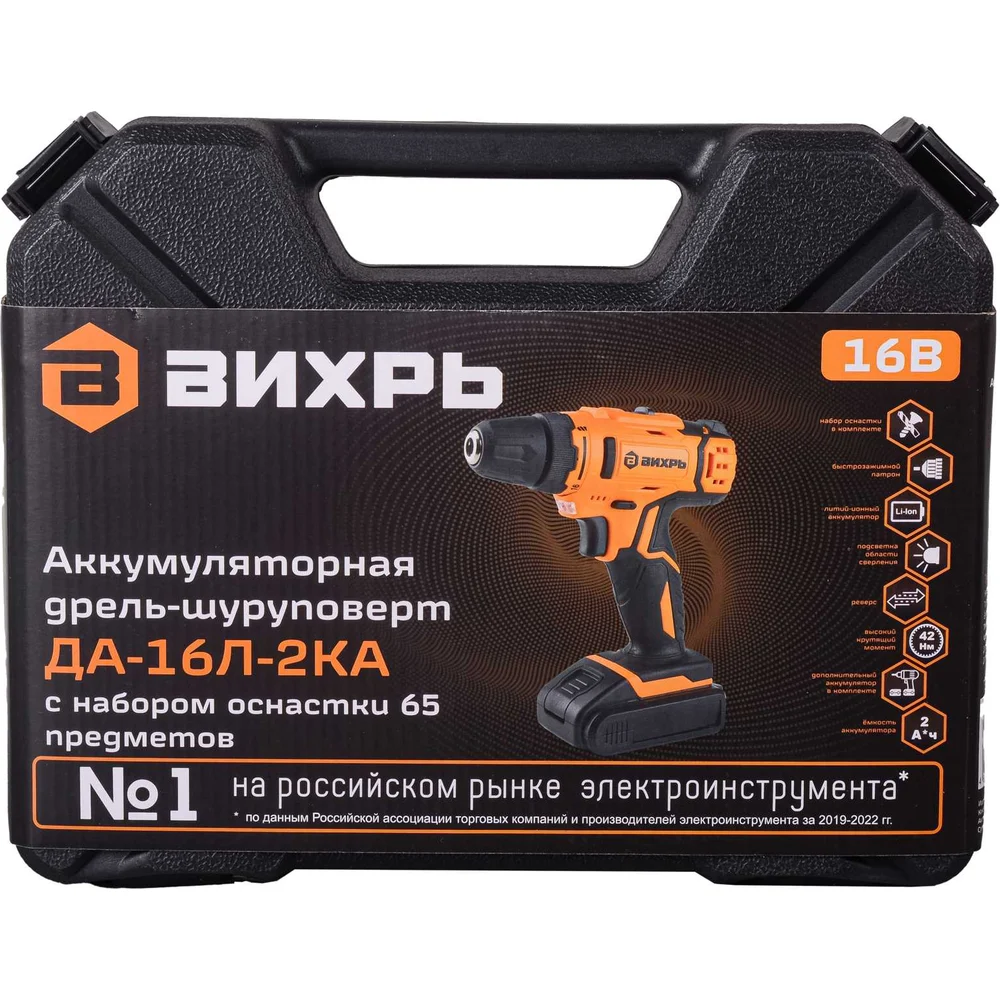 Купить Аккумуляторная дрель-шуруповерт Вихрь ДА-16Л-2КА с набором оснастки, 65 предметов 72/14/49 по лучшей цене с доставкой - интернет магазин №1 в России