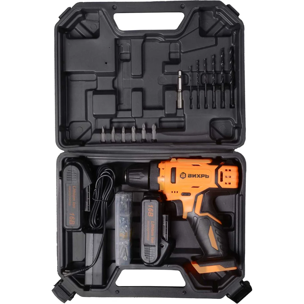 Аккумуляторная дрель-шуруповерт Вихрь ДА-16Л-2КА с набором оснастки, 65 предметов 72/14/49