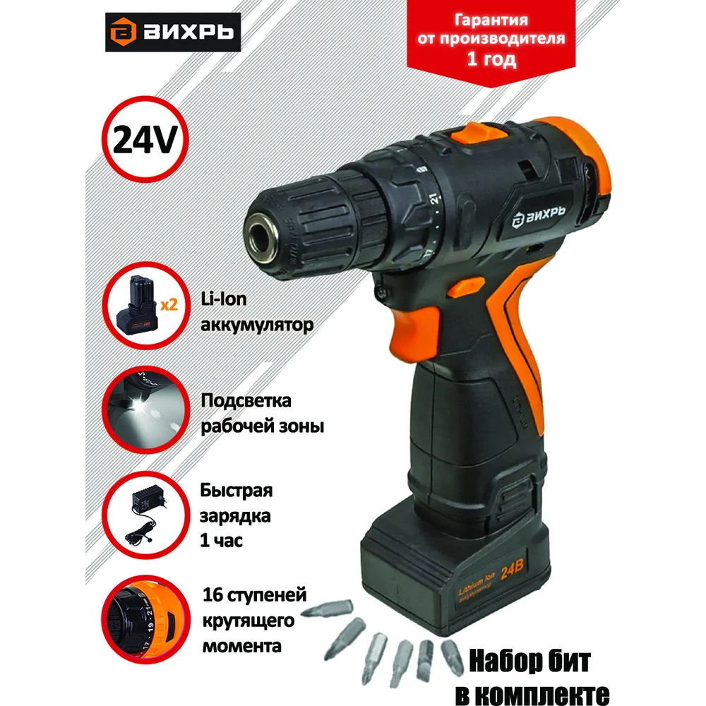 Купить Аккумуляторная дрель-шуруповерт Вихрь ДА-24Л-2К/Б 72/14/24 по лучшей цене с доставкой - интернет магазин №1 в России