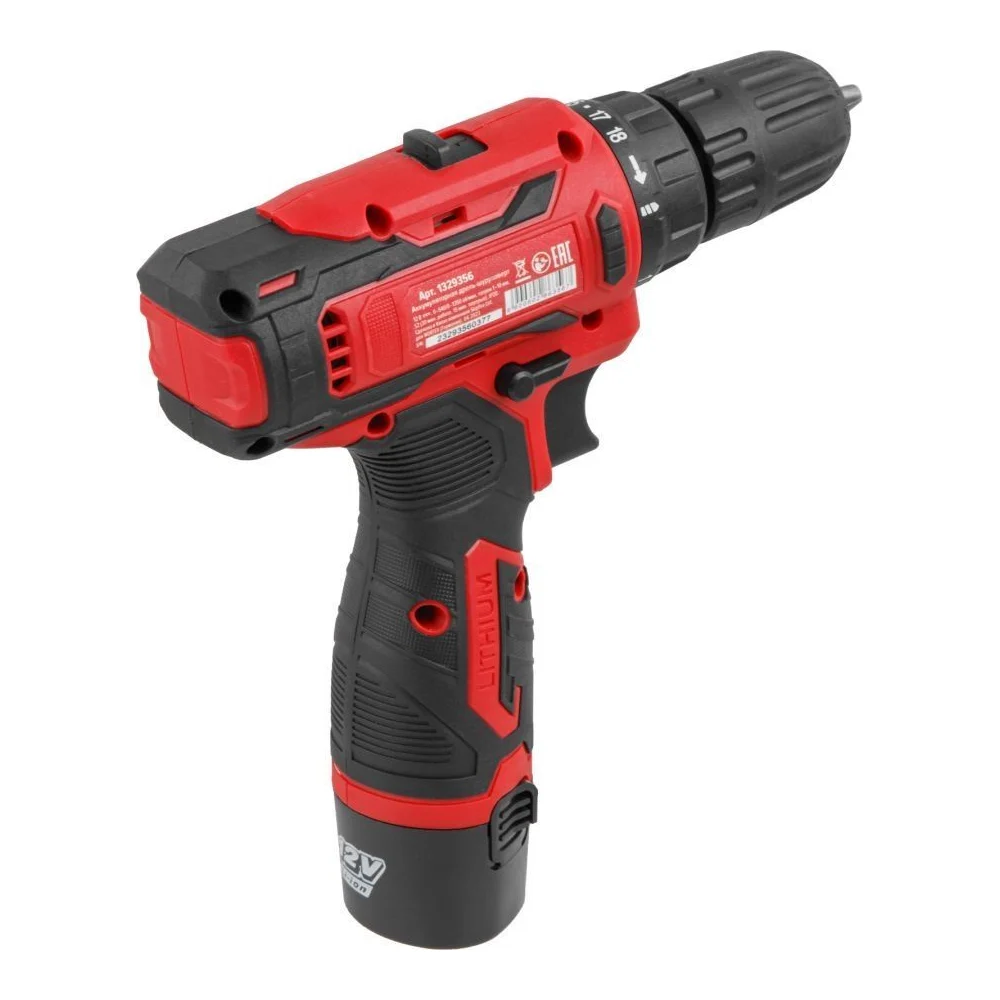 Комплектация Дрель-шуруповерт; Аккумуляторная батарея 1.5 Ач - 2 шт; Зарядное устройство - 1 шт
