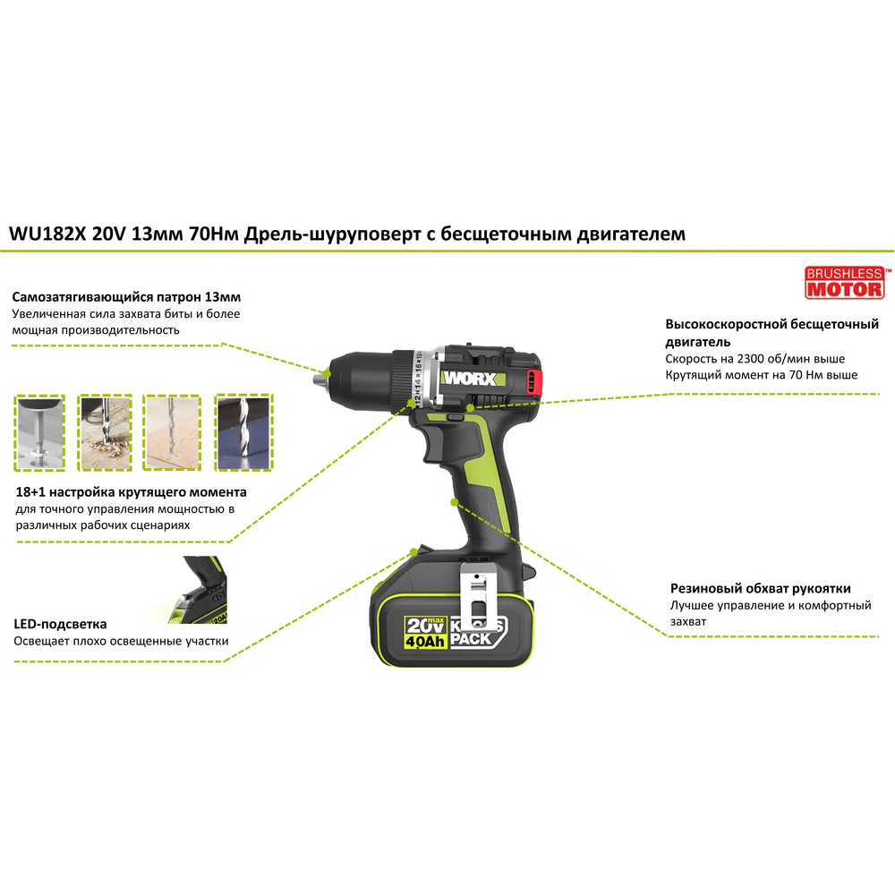 Купить Аккумуляторная дрель-шуруповерт WORX Professional WU182X.9 по лучшей цене с доставкой - интернет магазин №1 в России