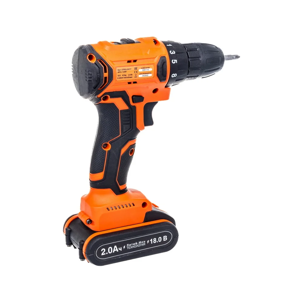 Купить Аккумуляторная дрель СПЕЦ БДА-18-БД 18В, бесщеточный двигатель, 0-400/0-1650 об/мин, подсветка, реверс, 45 Нм, 2 аккумулятора, кейс СПЕЦ-4116 по лучшей цене с доставкой - интернет магазин №1 в России