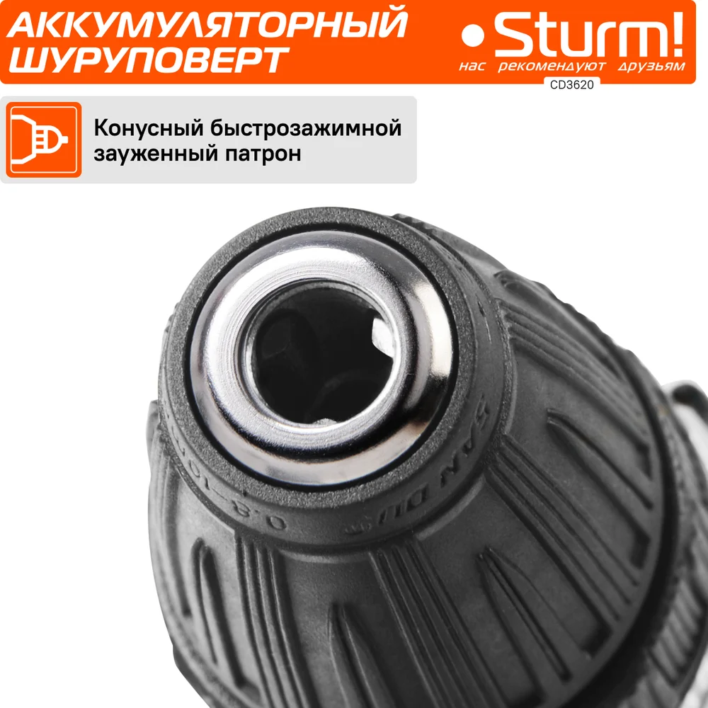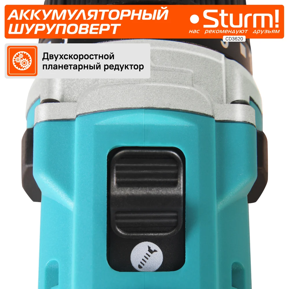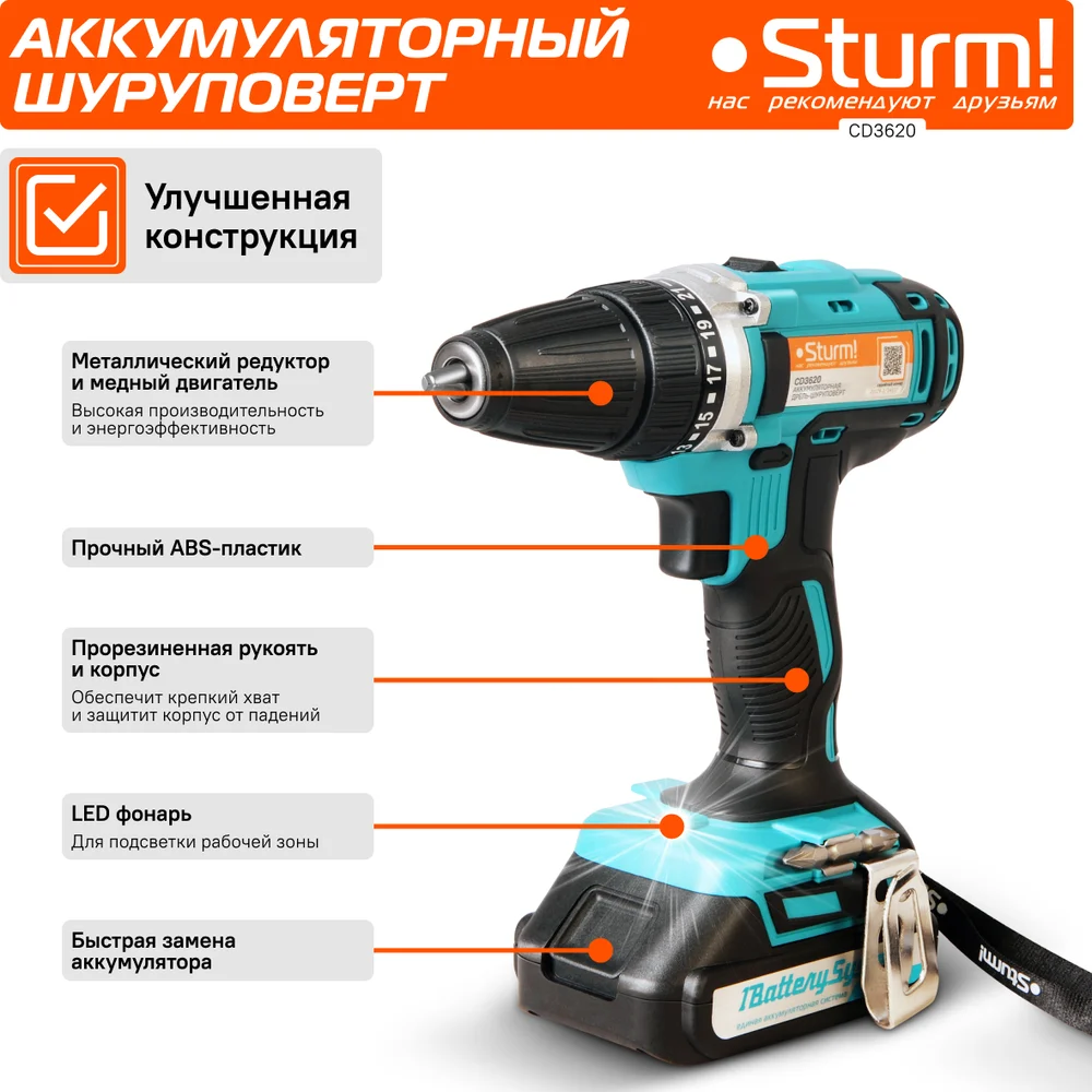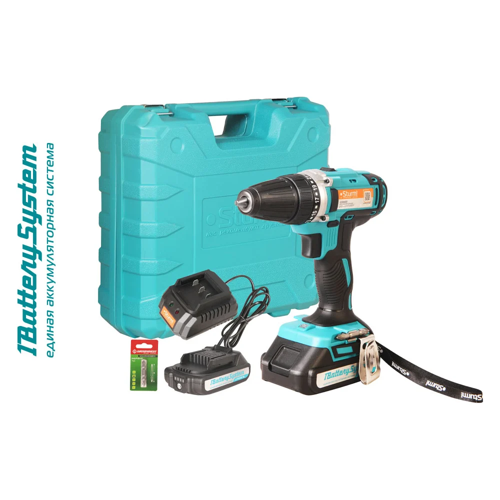Купить Аккумуляторная дрель Sturm 20 В, 1BatterySystem, 2 акк., 2,0 Ач, кейс CD3620 по лучшей цене с доставкой - интернет магазин №1 в России