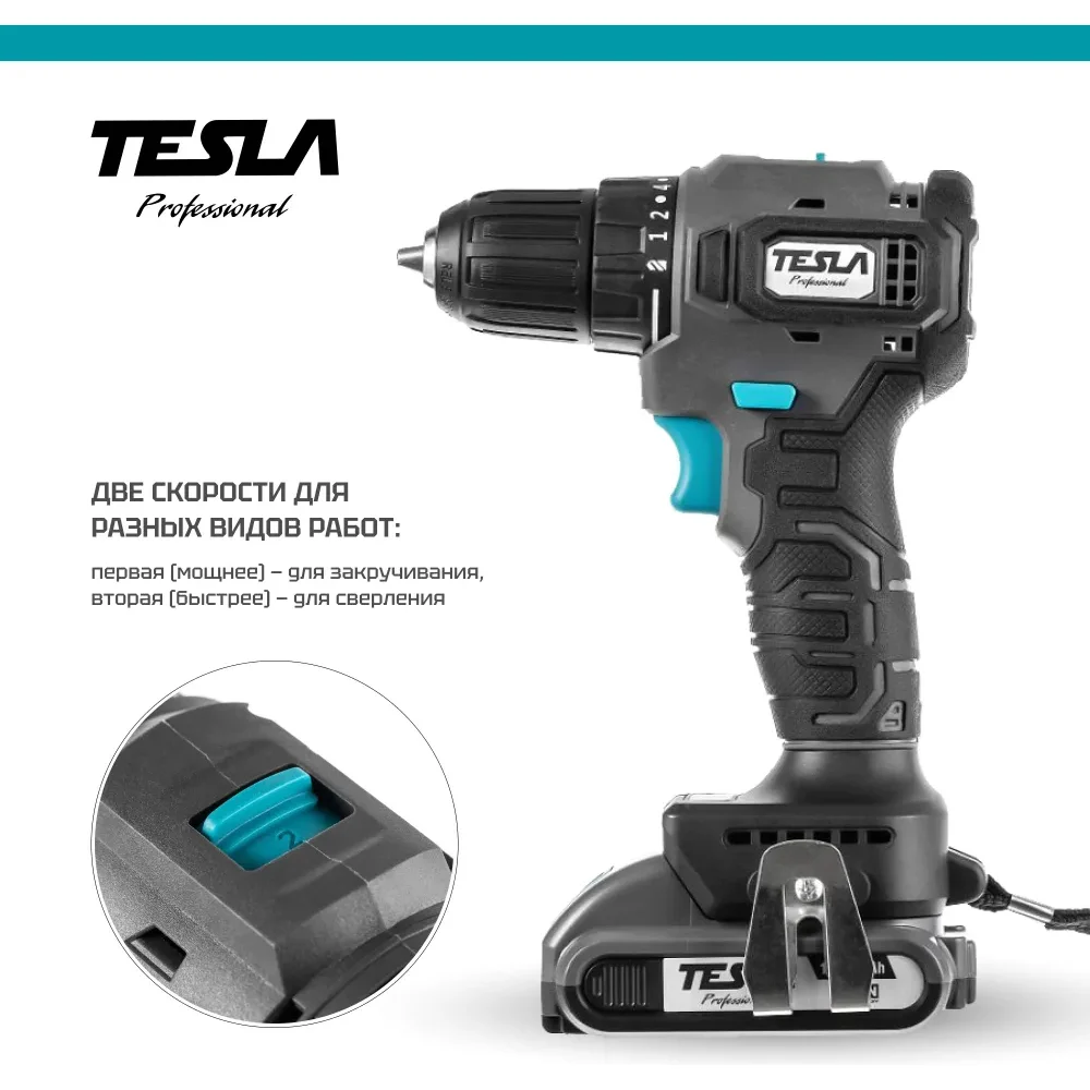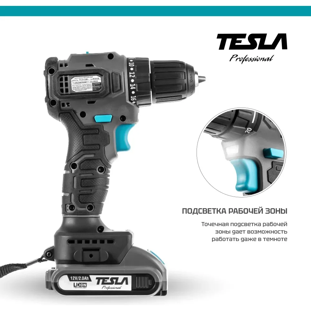 Купить Аккумуляторная дрель Tesla TCD12BL 12.0 В, 2x2 Ач, 10 мм, 0-350/0-1400 об/мин, 43 Нм, зарядка 1 ч, кейс 834528 по лучшей цене с доставкой - интернет магазин №1 в России
