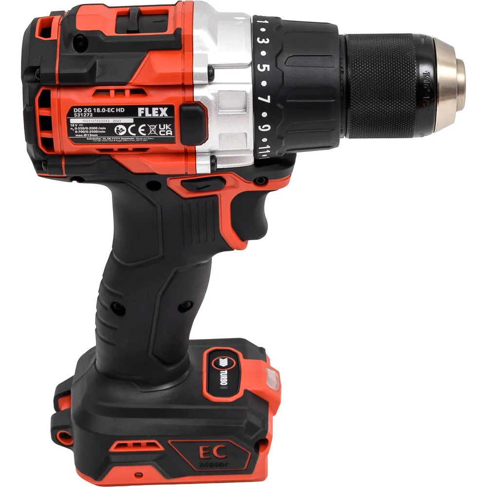 Аккумуляторная двухступенчатая дрель FLEX DD 2G 18.0-EC HD C с тубро режимом 531272