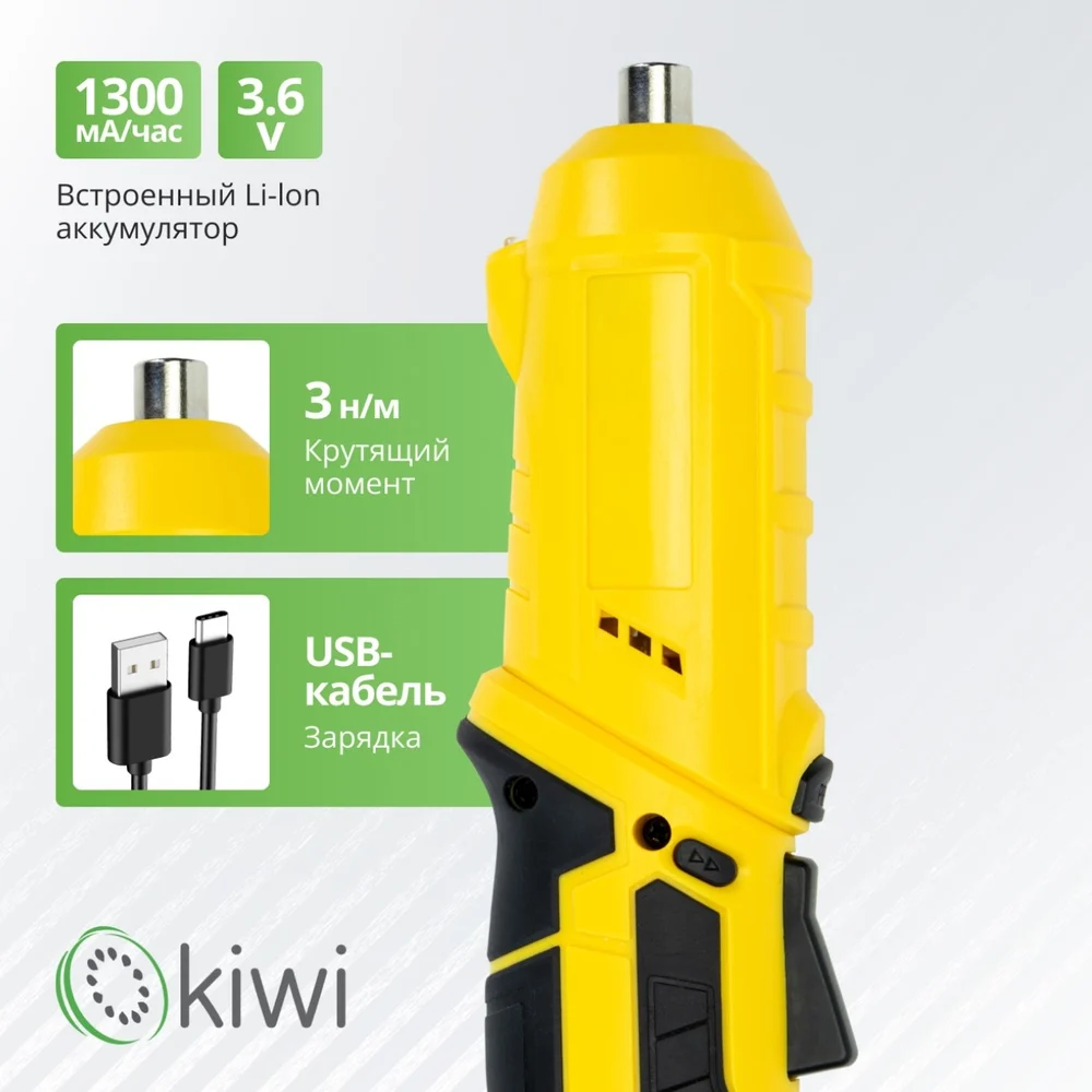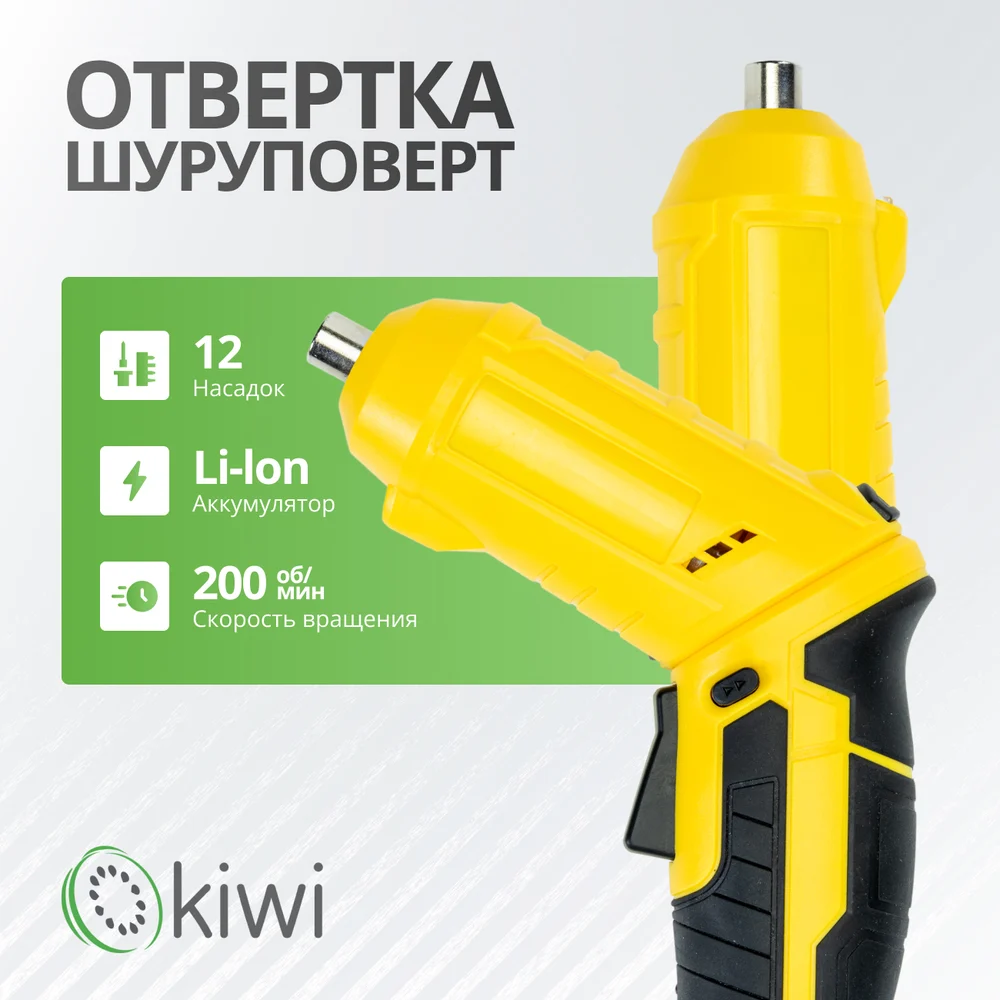 Купить Аккумуляторная электроотвертка трансформер KIWI 12 насадок / отвертка шуруповерт KHSD-7511 по лучшей цене с доставкой - интернет магазин №1 в России