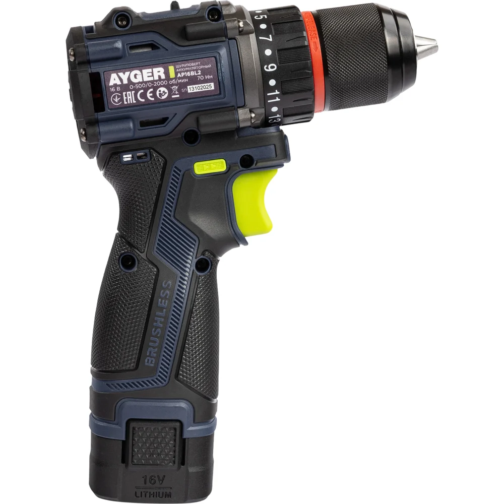 Аккумуляторный бесщеточный шуруповерт AYGER AP16BL2