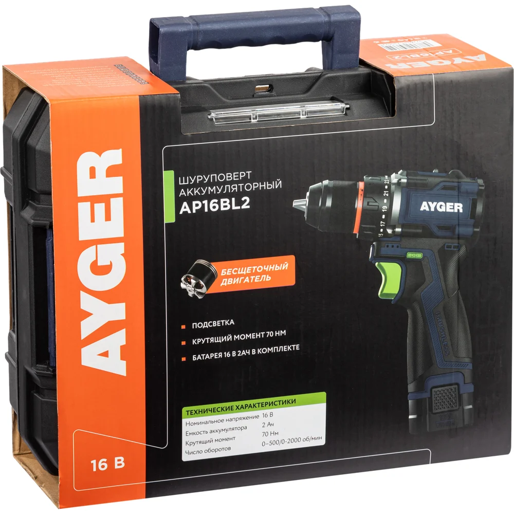 Купить Аккумуляторный бесщеточный шуруповерт AYGER AP16BL2 по лучшей цене с доставкой - интернет магазин №1 в России