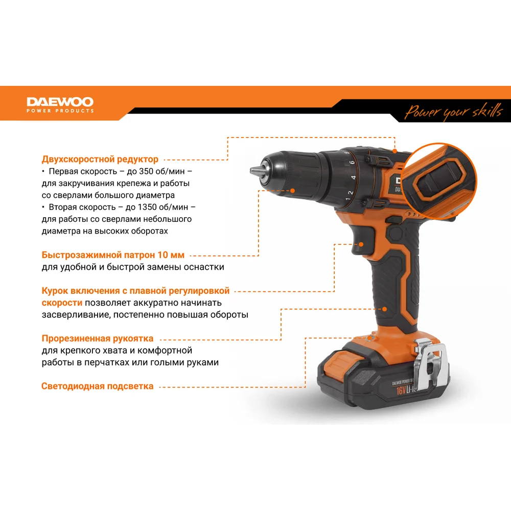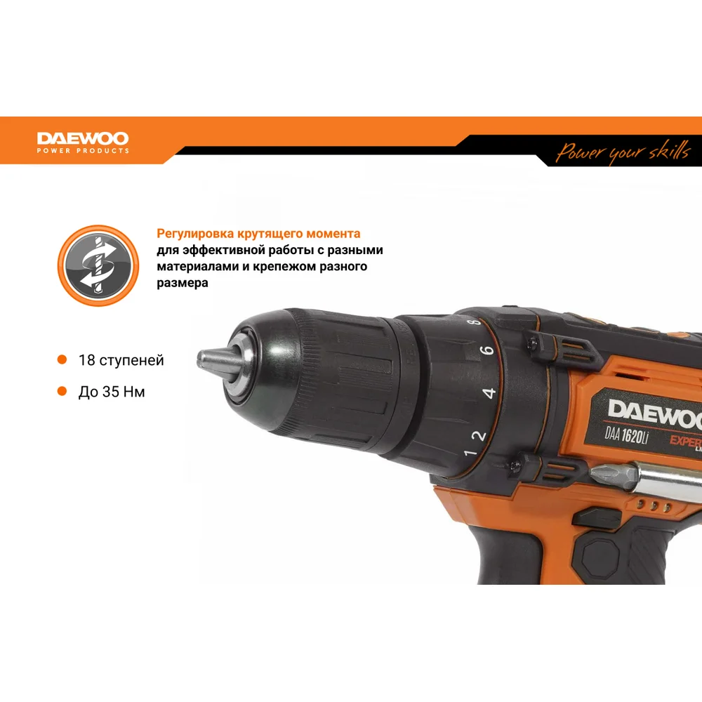 Купить Аккумуляторный дрель-шуруповерт DAEWOO DAA 1620 Li DAA 1620Li по лучшей цене с доставкой - интернет магазин №1 в России
