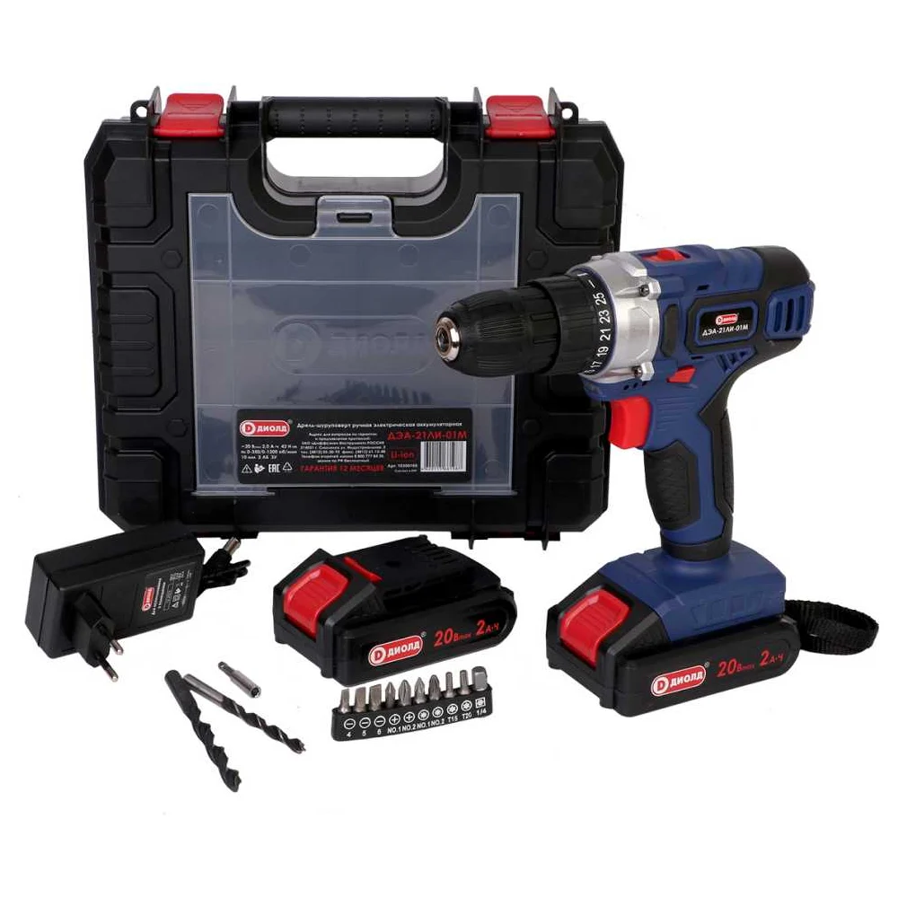 Аккумуляторный шуроповерт ДИОЛД ДЭА-21 ЛИ-01М (кейс, 2 АКБ), 10300160