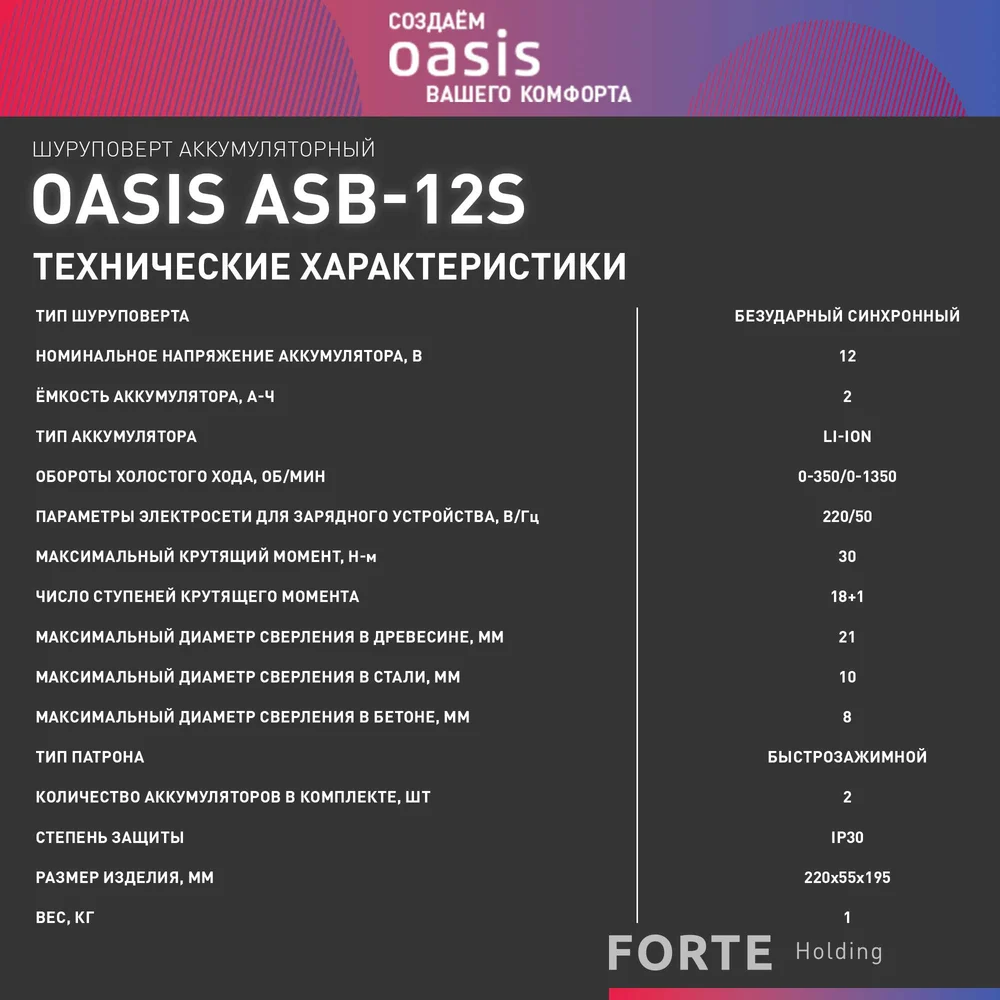 Аккумуляторный шуруповерт OASIS ASB-12S