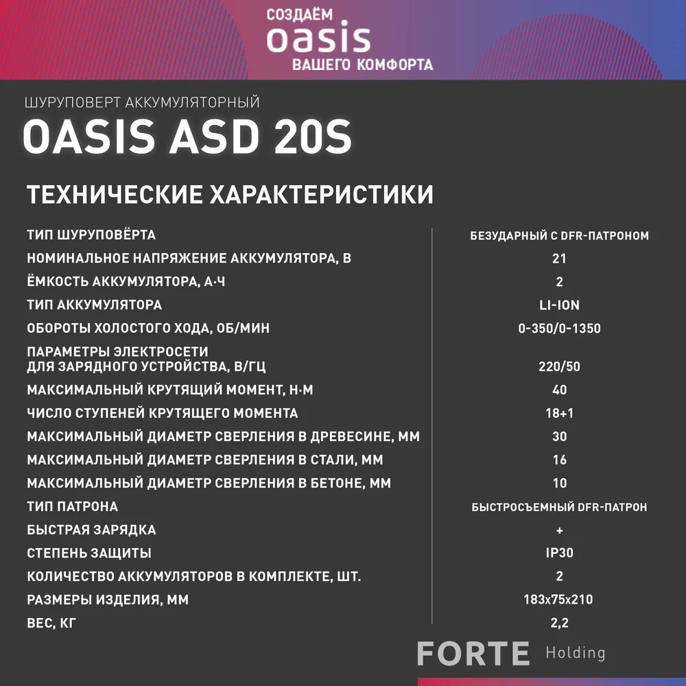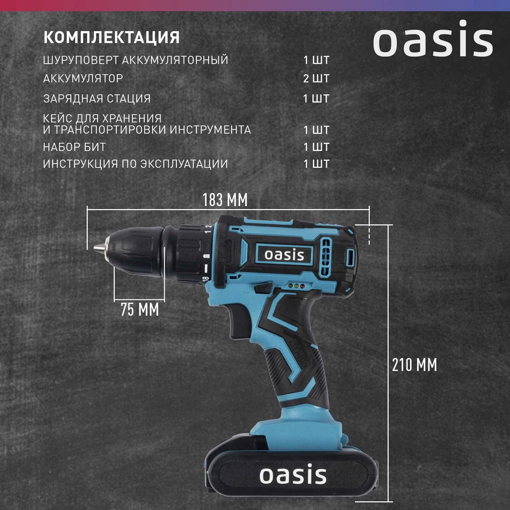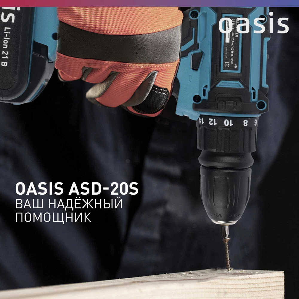 Купить Аккумуляторный шуруповерт OASIS ASD-20S по лучшей цене с доставкой - интернет магазин №1 в России
