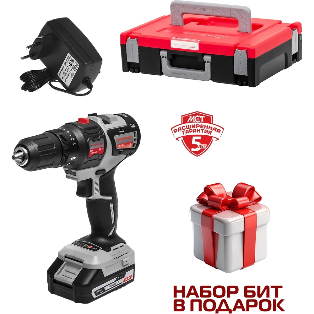 Купить Бесщеточная аккум. дрель-шуруп. Интерскол ДА-10/18В 44 (МБ100, 2 АКБ 2 А/ч, ЗУ) 755.2.1.47 по лучшей цене с доставкой - интернет магазин №1 в России