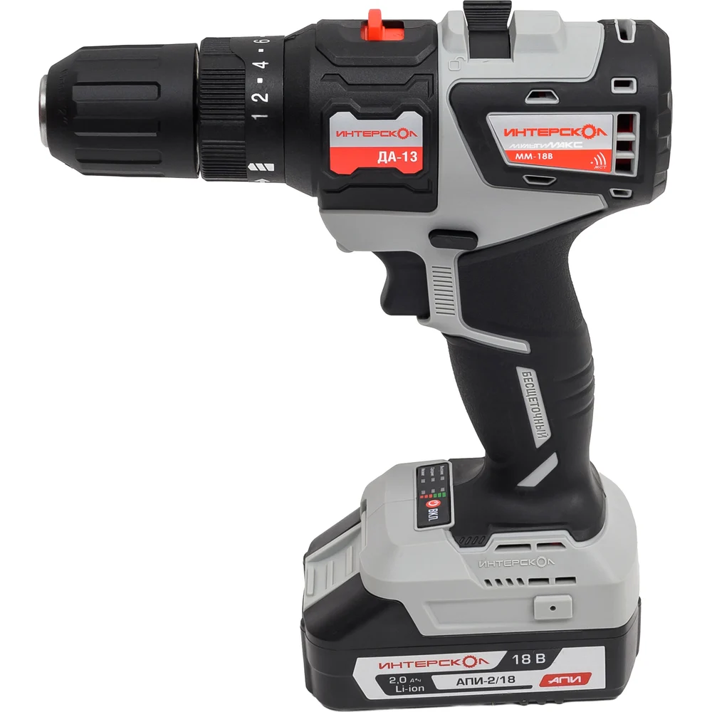 Бесщеточная аккум. дрель-шуруп. Интерскол ДА-10/18В 44 (МБ100, 2 АКБ 2 А/ч, ЗУ) 755.2.1.47