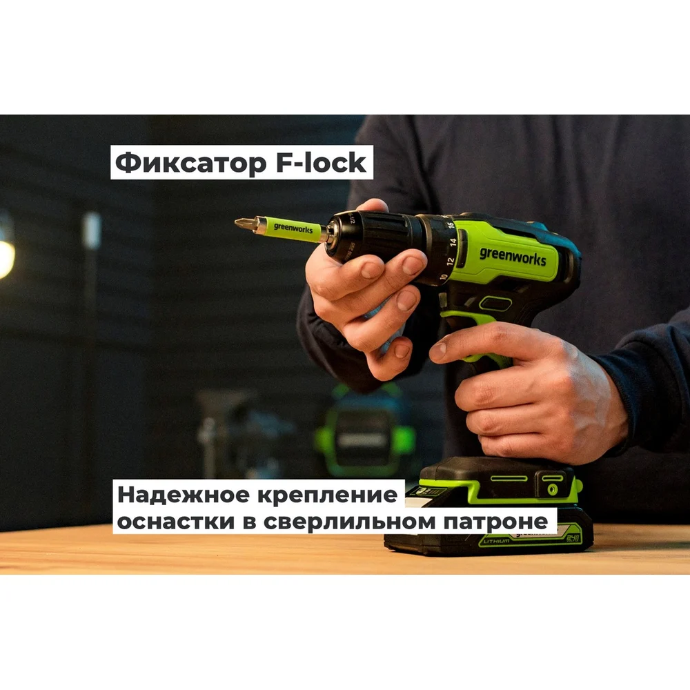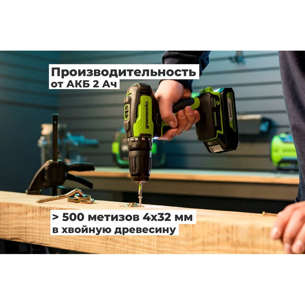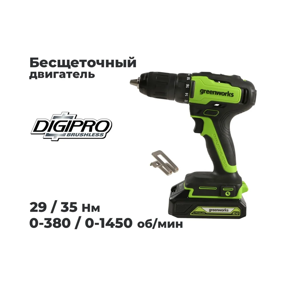 Купить Бесщеточная дрель-шуруповерт GreenWorks GD24DD35, 24В, 29/35 Нм, 1x2Ач,ЗУ, 3704007VUA по лучшей цене с доставкой - интернет магазин №1 в России