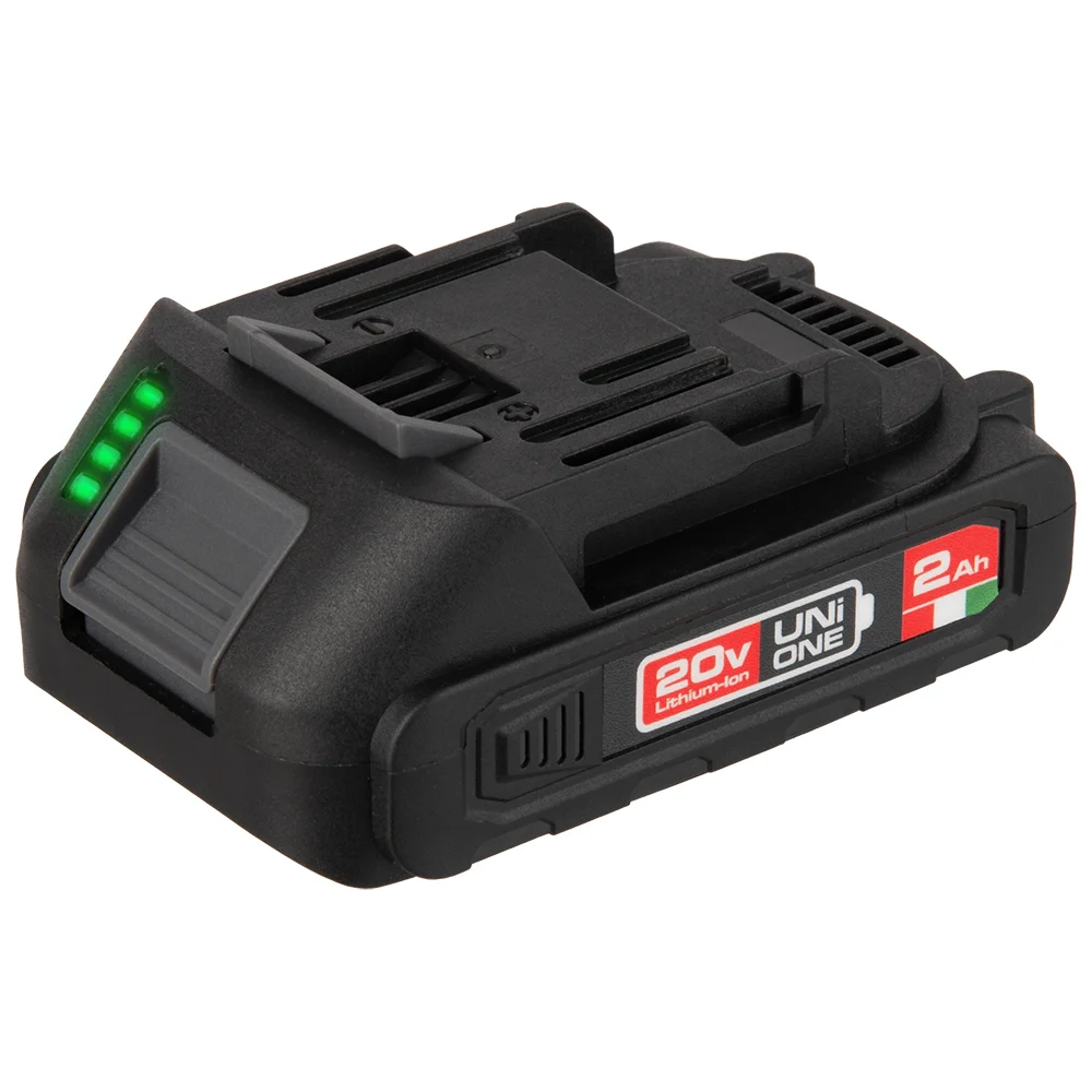 Комплектация Дрель; Li-Ion аккумулятор 2 Ач, 2 шт; Зарядное устройство; Клипса крепления к ремню; Пластиковый кейс