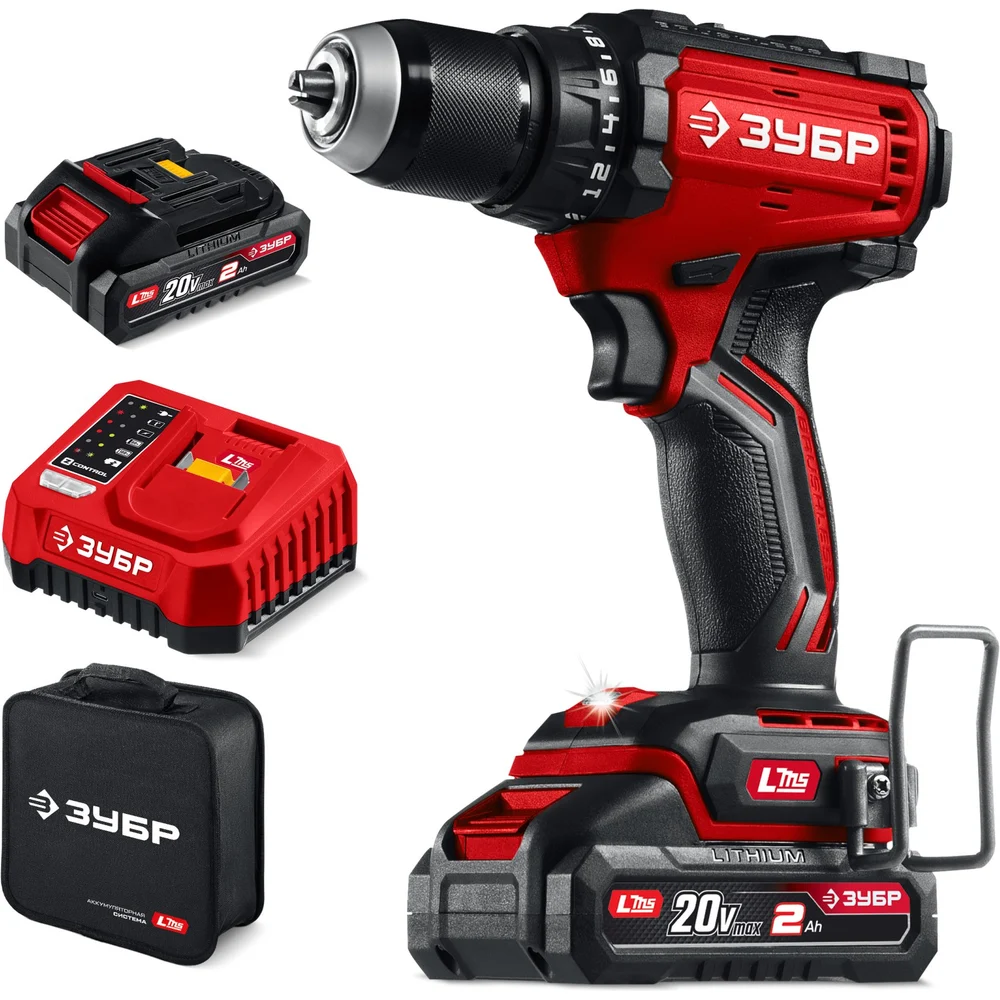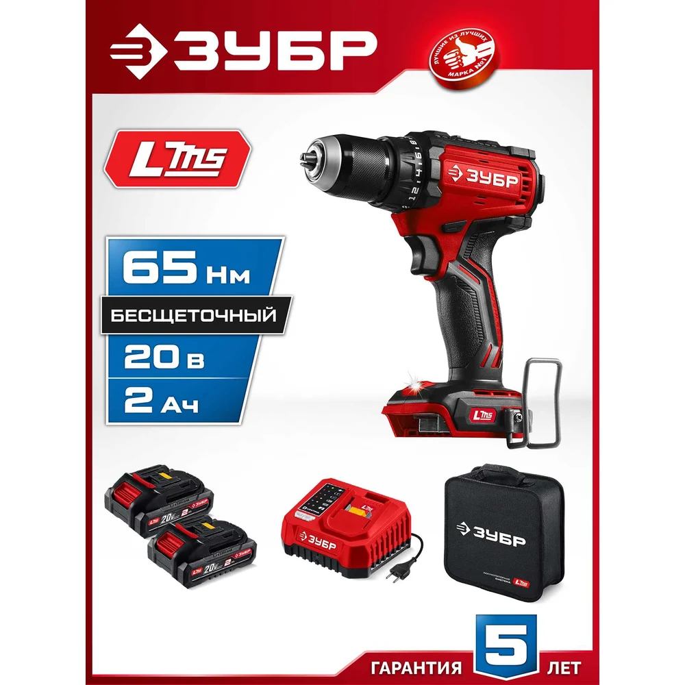 Купить Бесщеточная дрель-шуруповерт, сумка ЗУБР 20 В, 65 Н·м, 2 АКБ LMS (2 А·ч) ДБ-65-22 по лучшей цене с доставкой - интернет магазин №1 в России
