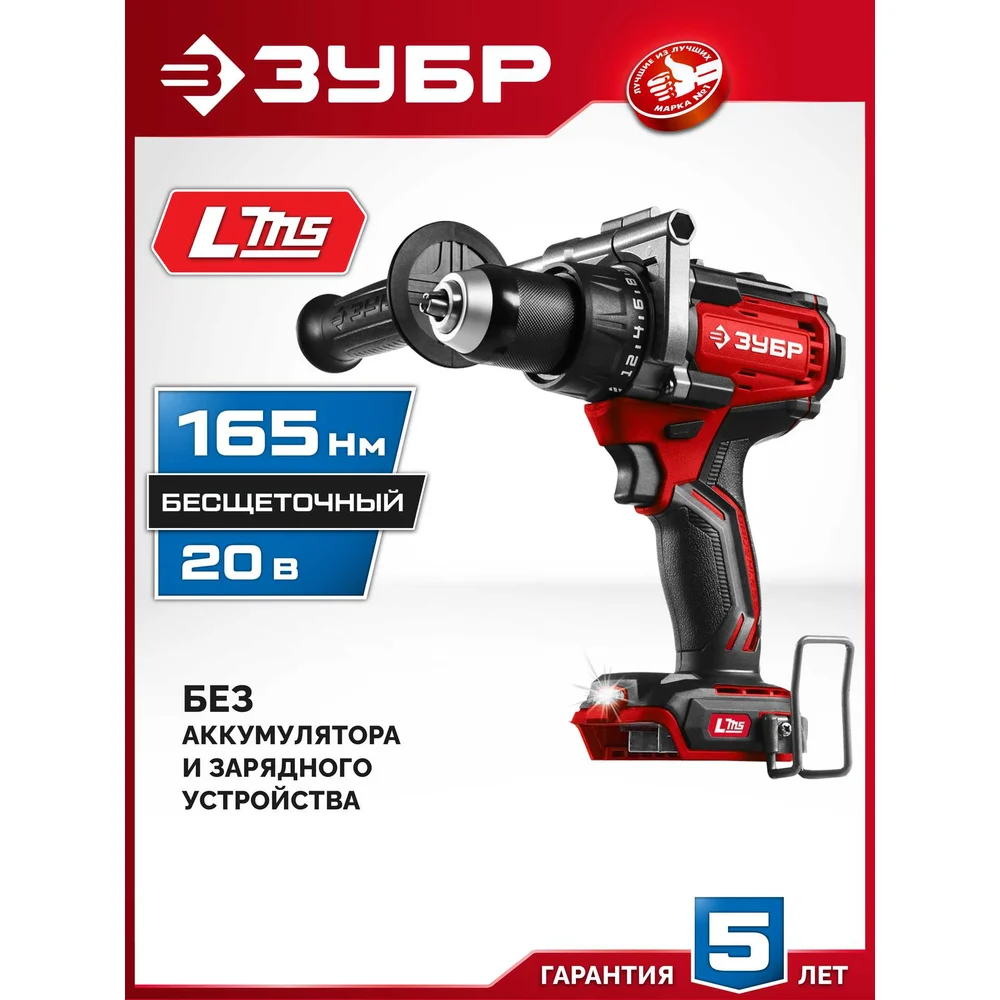 Купить Бесщеточная дрель-шуруповерт ЗУБР 20 В, 165 Н·м, без АКБ (LMS) ДБ-165 по лучшей цене с доставкой - интернет магазин №1 в России