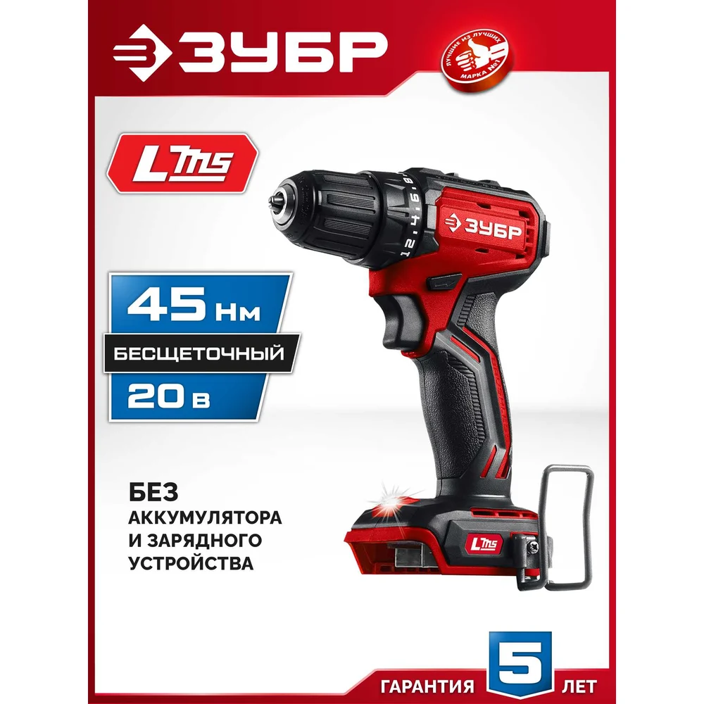 Купить Бесщеточная дрель-шуруповерт ЗУБР 20 В, 45 Н·м, без АКБ (LMS) ДБ-45 по лучшей цене с доставкой - интернет магазин №1 в России