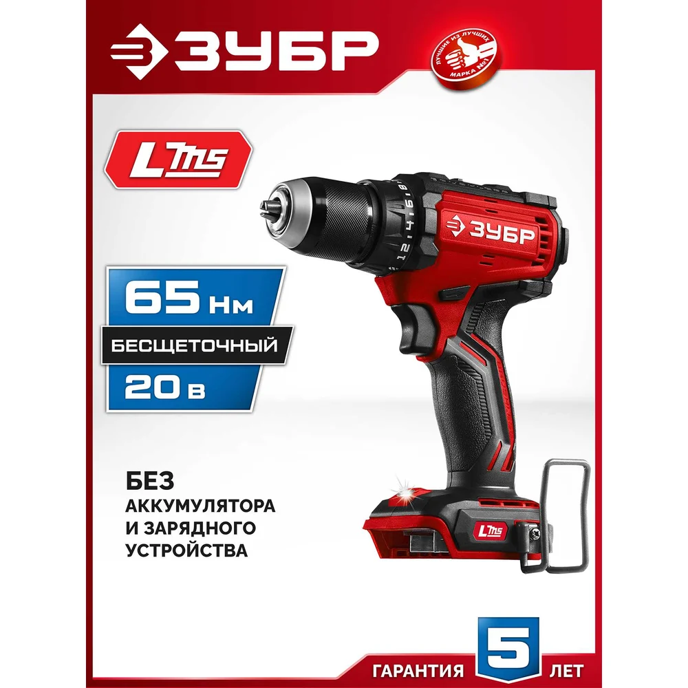 Купить Бесщеточная дрель-шуруповерт ЗУБР 20 В, 65 Н·м, без АКБ (LMS) ДБ-65 по лучшей цене с доставкой - интернет магазин №1 в России