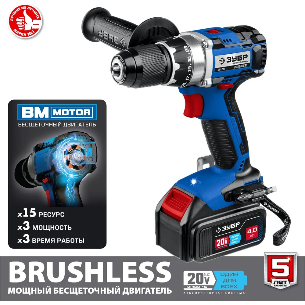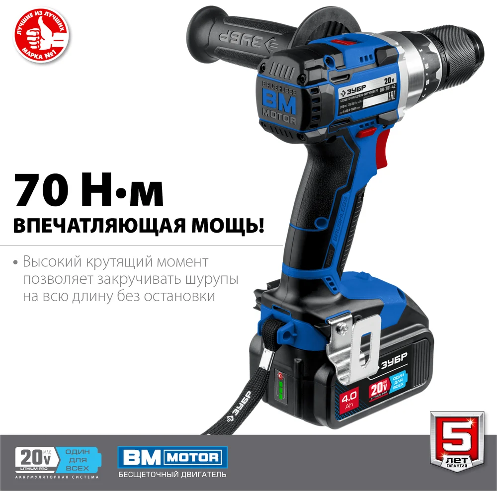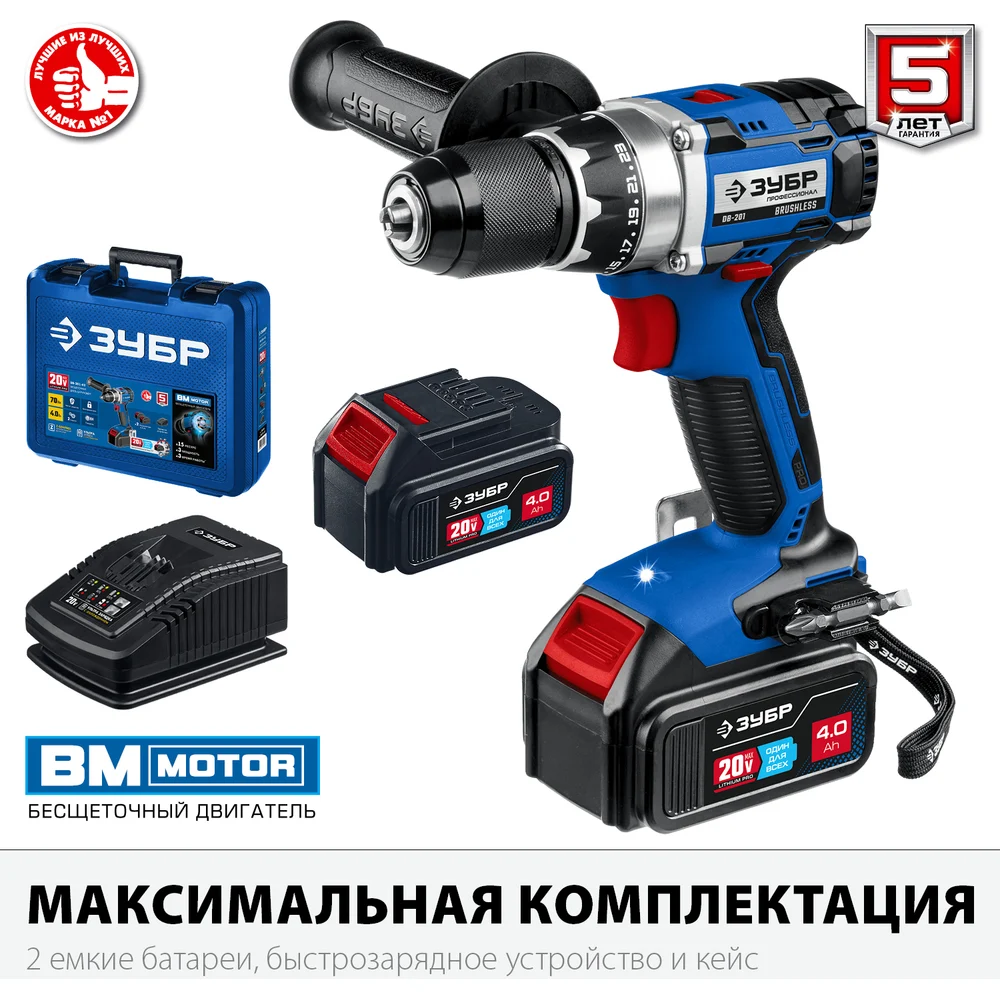 Купить Бесщеточная дрель-шуруповерт ЗУБР Профессионал DB-201-42 по лучшей цене с доставкой - интернет магазин №1 в России