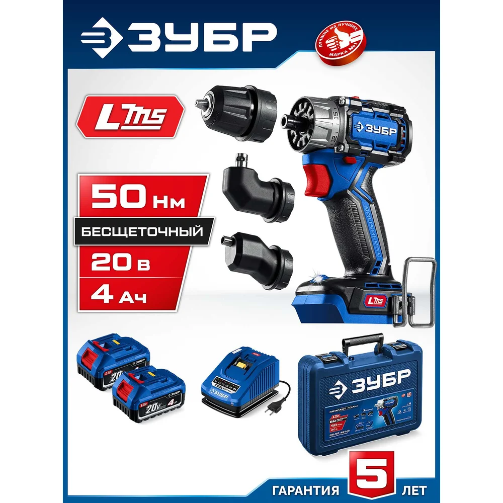 Купить Бесщеточная дрель-шуруповерт ЗУБР Профессионал Компакт Комби, 20 В, 50 Н·м, 2 АКБ LMS (4 А·ч), кейс DB-50-42-H3 по лучшей цене с доставкой - интернет магазин №1 в России